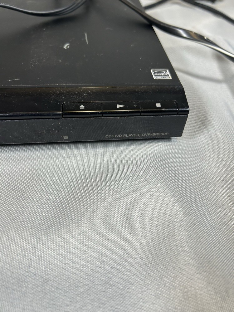 The Sony DVP-SR200P Progressive Scan DVD Player is a high-quality DVD player from Sony that offers progressive scan capabilities for enhanced video quality. This model comes with a remote. With its sleek design and reliable performance, this DVD player is a good choice for those looking for a basic yet effective device for enjoying their DVD collection.