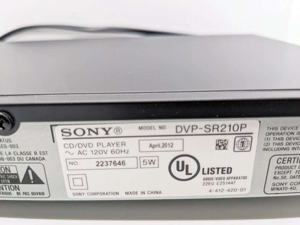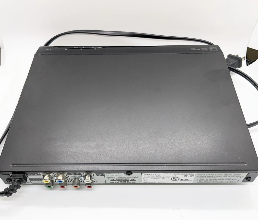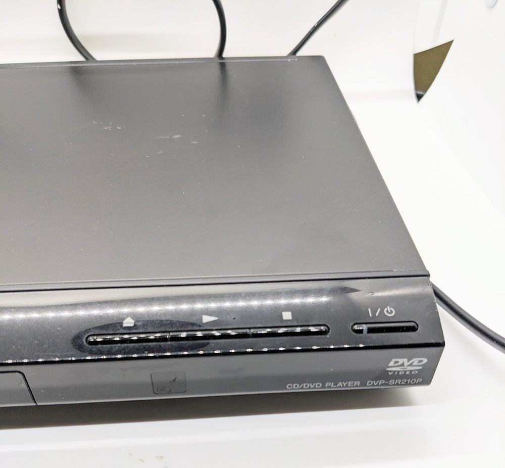 Sony DVP-SR210P CD / DVD Player Tested Working/No Remote Great gift for yourself or family members who want to watch their favorite DVDs Includes free Movie: The Blue Planet Seas of Life Great condition Quick shipping This Sony DVP-SR210P CD / DVD player is a reliable and efficient device that allows you to play your favorite movies and music with ease. It is compatible with CDs and DVDs, and has a maximum resolution of 1080p (FHD) for an exceptional viewing experience. The player is black in color and comes with a composite video RCA connectivity feature for easy connectivity. The Sony DVP-SR210P is ideal for those looking for a simple and hassle-free device to play their favorite movies.