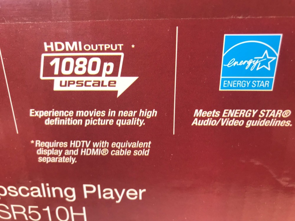 Catch up on all the latest movies with the versatile Sony DVP-SR510H DVD player, featuring fast and slow playback. This compact unit provides users with solid sound and amazing picture quality. Discs are played at near HD-quality when paired with an HDTV with 1080p resolution and an HDMI cable. The machine remembers where you left off on a movie, thanks to multiple-disc resume, and comes with Precision Cinema Progressive technology built inside. In addition to playing movies, the device also plays JPEG and WMA files which have been burned onto a CD-R/RW. The energy efficient player also comes with a multi-band TV remote.