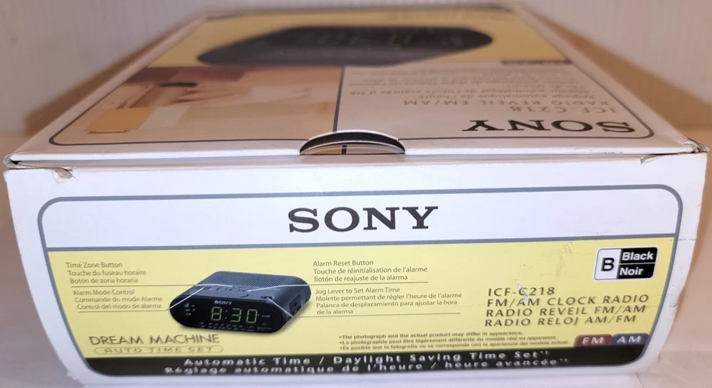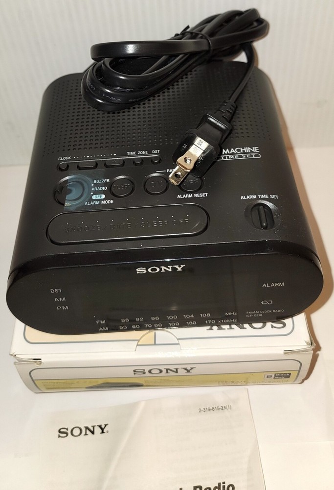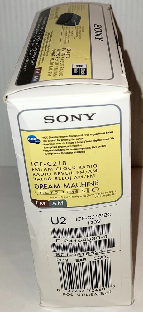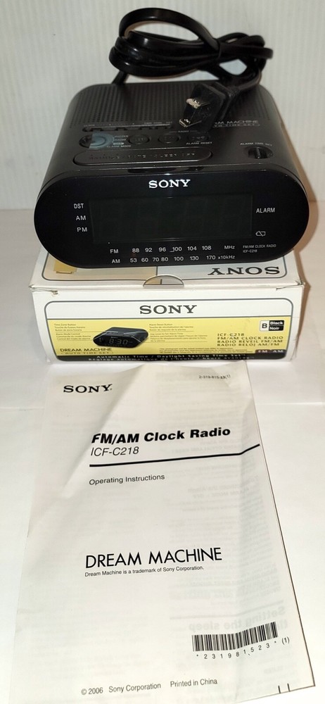Brand: Sony Character: Clock King Year Manufactured: 2010 Theme: Boxing Type: Clock Radio Finish: Black Style: Modern Character Family: 101 Dalmatians Number Type: Arabic Numerals Color: Black MPN: ICFC218 Movement: Quartz (Mains/Electric) gtin13: 0027242704602 UPC: 0027242704602 Era: 21st Century (2000-Now) Frame Material: Plastic Original/Reproduction: Original GTIN: 0027242704602 Shape: Rectangular Features: LCD Display, Large Display, Day/Date Display, Atomic/Radio Controlled, Nature Sounds, LED Display, Multiple Time Zones, Dual Alarm, AM/FM Radio, Timer, Battery Backup, Alarm, Humidity Display Material: Plastic Power Source: Electrical Display Type: Digital Protection Plan: No Coverage Smart Home Protocol: Powerline/UPB, Bluetooth
