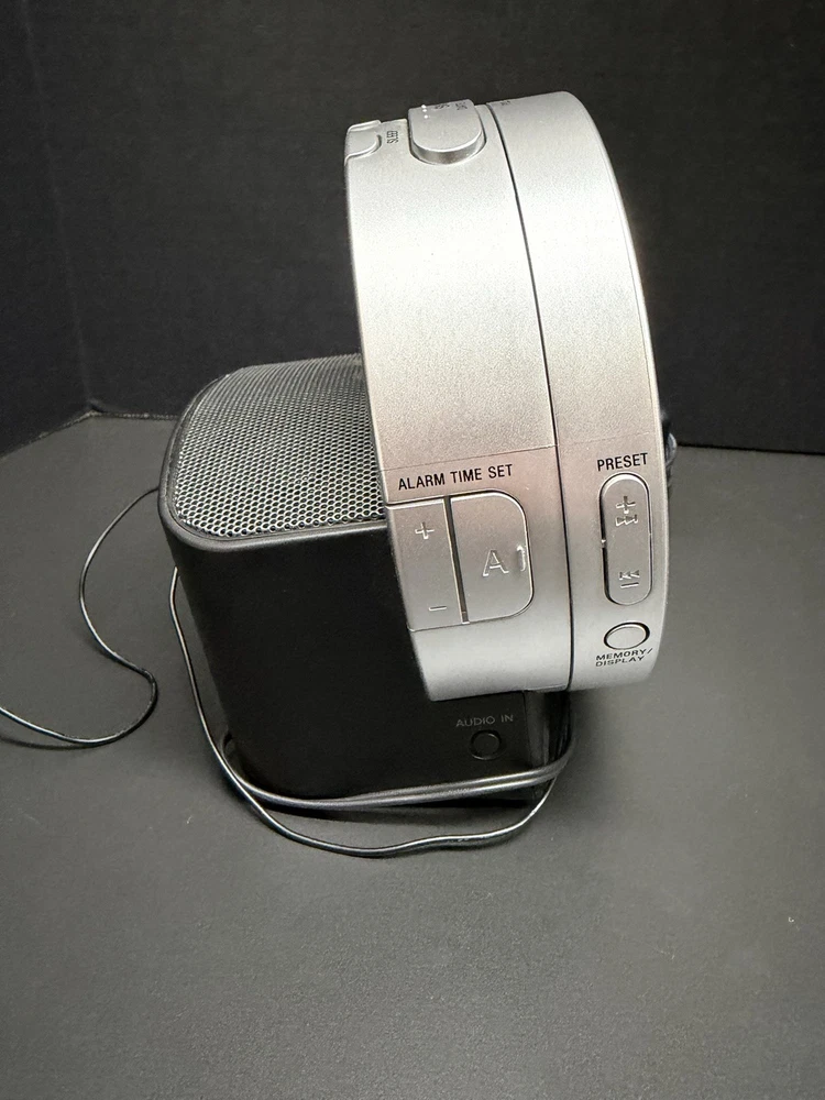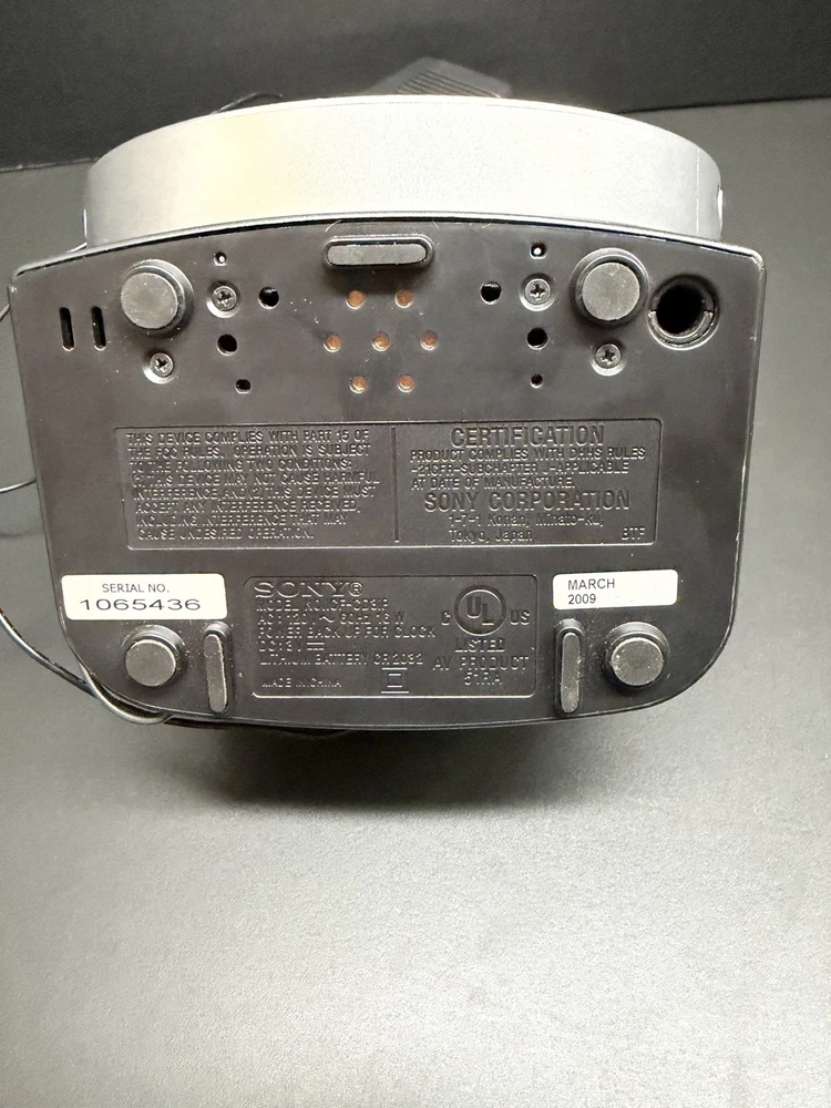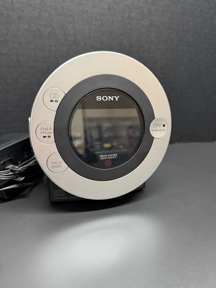 UPC: Does not apply Material: Plastic Era: 21st Century (2000-Now) Style: Modern Power Source: Electrical Type: Clock Radio Frame Material: Plastic Color: Silver Finish: Silver Character Family: NOT SPECIFIED gtin13: Does not apply Country of Origin: China Brand: Sony Display Type: Digital Original/Reproduction: Original Product Line: Sony Dream Machine Movement: NOT SPECIFIED Manufacturer Warranty: NONE MPN: ICF-CD3iP Features: CD Player Shape: Round Room: Bathroom, Bedroom, Dining Room, Garage, Hallway, Home Office/Study, Kitchen, Living Room, Porch, Sunroom, Utility/Laundry Room Model: Dream Machine ICF-CD3iP Theme: Modern Character: Dream Machine Department: Kids, Teens, Adults Engraved: No Protection Plan: No Coverage