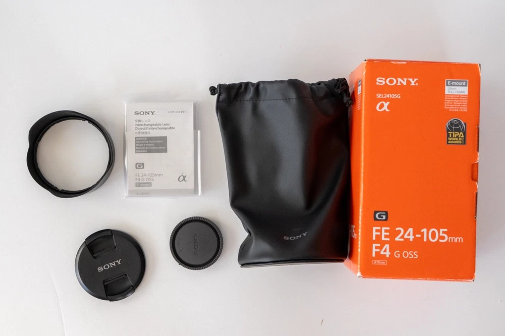 Sony Fe 24-105mm f4 g lens in used condition. It comes with an original hood, front/rear lens cap, pouch, manual and original box. The glass is clean and does not have scratch. There is dusts inside the lens, which don't seem to affect images. There are wears on paint on lens barrel. Please look at the photos attached for details.