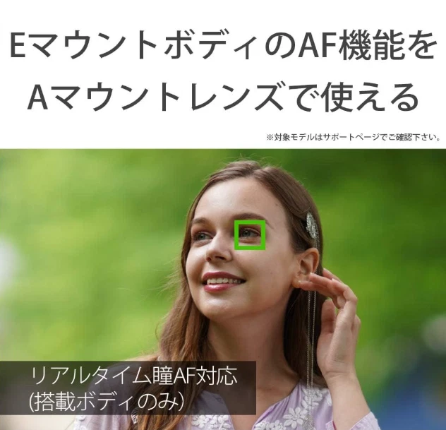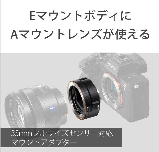 description Compatible with all A-mount lenses (teleconverter not compatible)Compact and cylindrical shape for comfortable operationAF function and high-speed continuous shooting of the latest E-mount bodies with A-mount lenses Weight: 88g Shipping Please select a delivery method Usual delivery delivery no material japan post Fast delivery shipping not included FedEx DHL International Buyers - Please Note: Import duties and taxes are not included in the item price or shipping cost. Please check with your country?s customs office to determine these additional costs prior to bidding or buying. Additionally, if the delivery address is in a remote area, there may be additional charges by FedEx or DHL. If such charges occur, you may be asked to pay an additional $15 to $20.