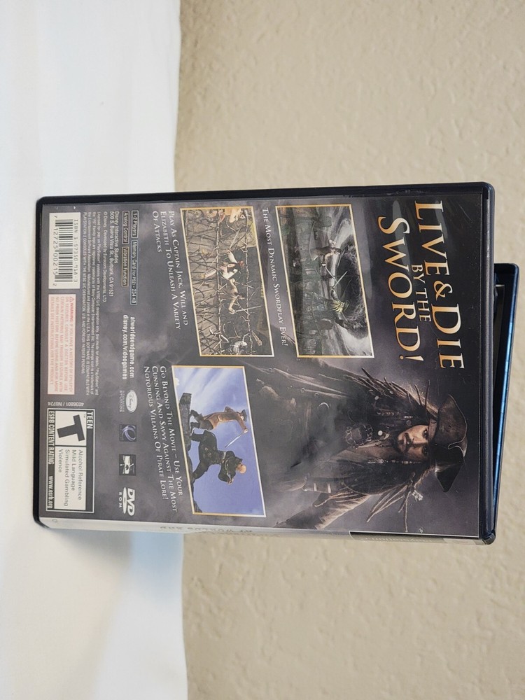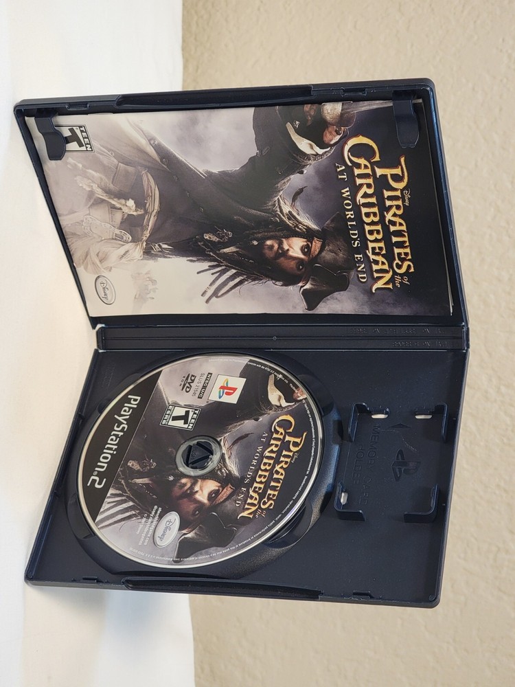 Sony Playstation 2 PS2 Disney Pirates of the Caribbean At Worlds End Game Game disc is in good condition with noticable light scratches and has a foggy like effect. Manual is in near mint condition. Case is in near mint condition with minor shelf wear.