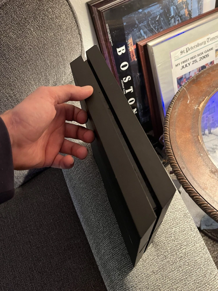 Sony PlayStation 4 (500 GB) Home Console - Black Barely used PlayStation 4. Only used for 1 year. One small mark under the PlayStation, other than that it runs beautifully and I will provide a controller with it along with a USB charger that’s about 5ft.