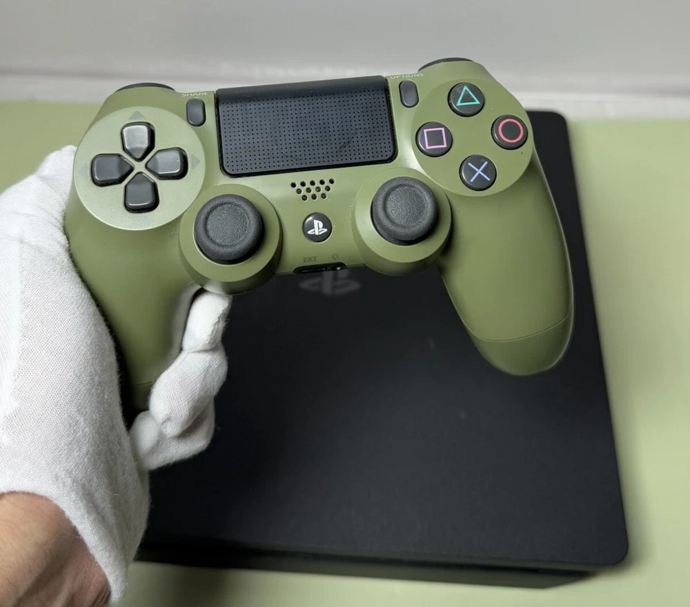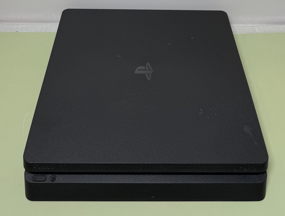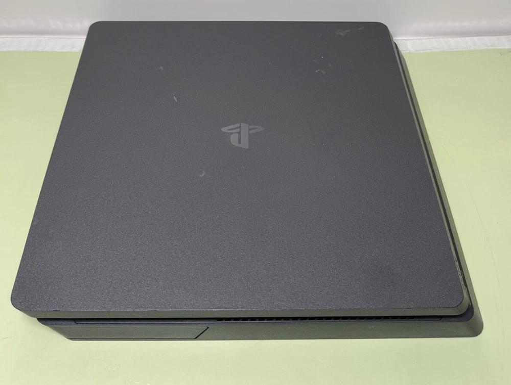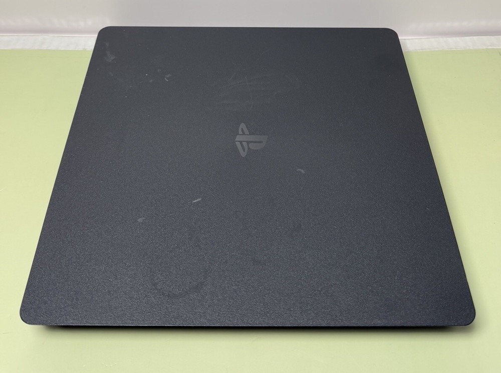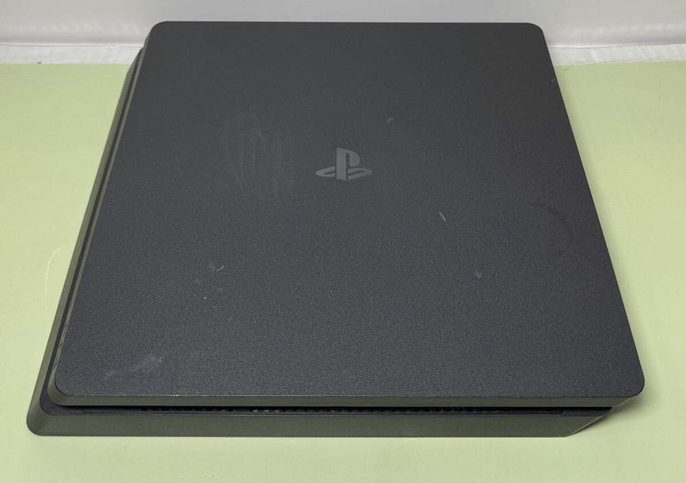 Preowned Sony PlayStation 4 Slim 1TB Black Home Gaming Console Great working and cosmetic condition. Has been fully tested and reset. Ready to use. Shows signs of minor use. There are some scratches on the body. Comes with the controller, power cable, HDMI and USB cable for the controller. Please see the photos for the best condition. FIRMWARE QUESTIONS WILL NOT BE ANSWERED