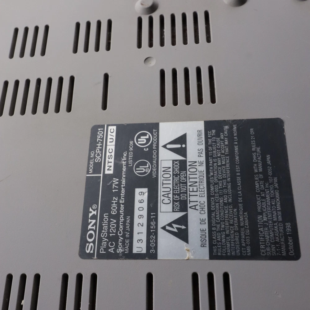 The Sony PlayStation Console (Model: SCPH-9001) comes with one controller but no cords included. This home console, in the color gray, is a classic Sony PlayStation 1 unit featuring AV Multi Out connectivity. It is tested and confirmed to be in working condition. Please note that this product may contain a chemical that is known to the State of California to cause cancer, as per California Prop 65 Warning. This unit is intended for use in the NTSC-U/C (US/Canada) region and is a standalone item, sold as a single unit.