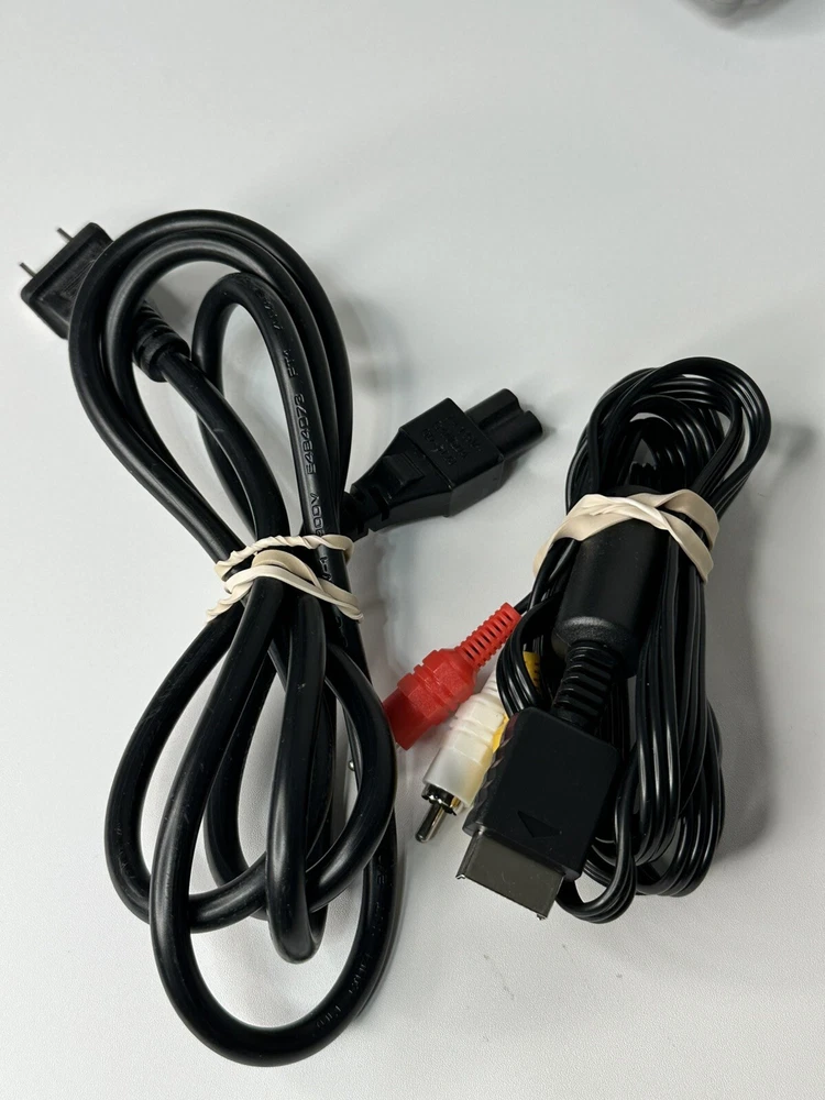 Bundle includes PS1 console Controller SCPH-110 Madcatz Flight Stick Controller Power cord- not original AV cable- not original SpongeBob SquarePants super sponge Game Everything has been tested and works as it should. There is a crack in the flight stick cover as shown in photos. This does not affect the controller at all.