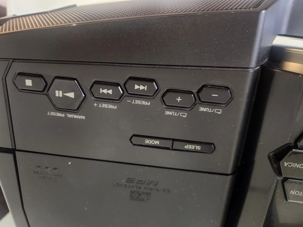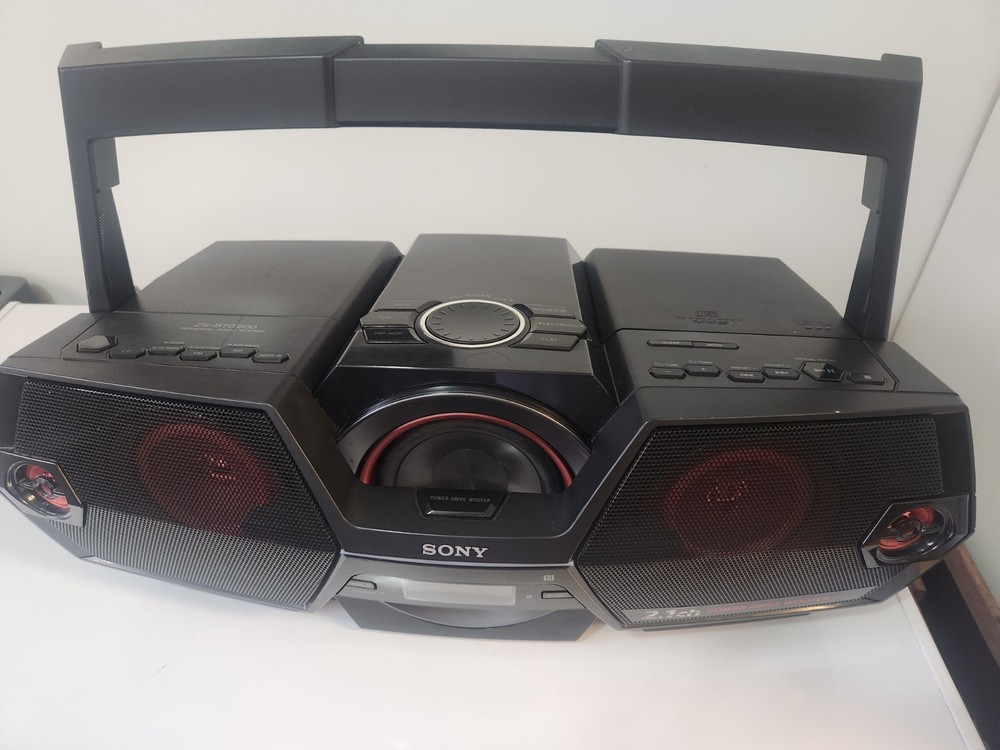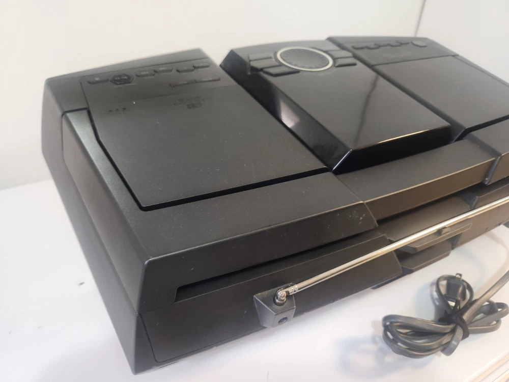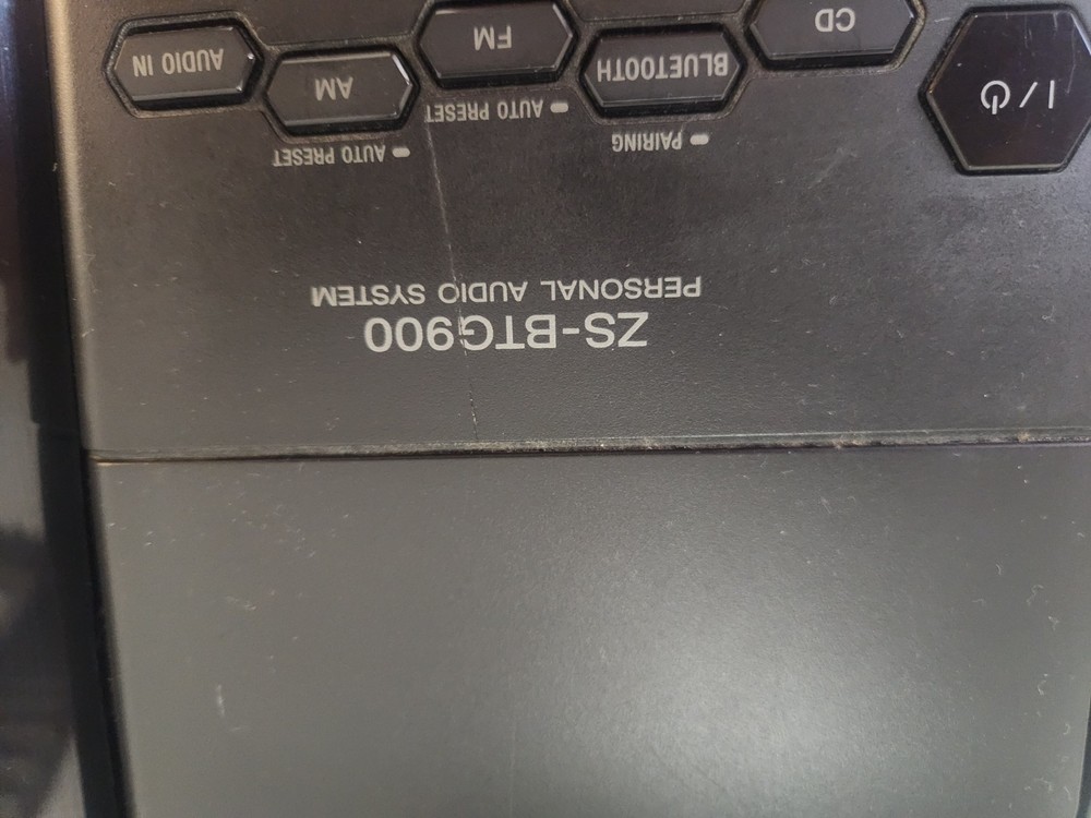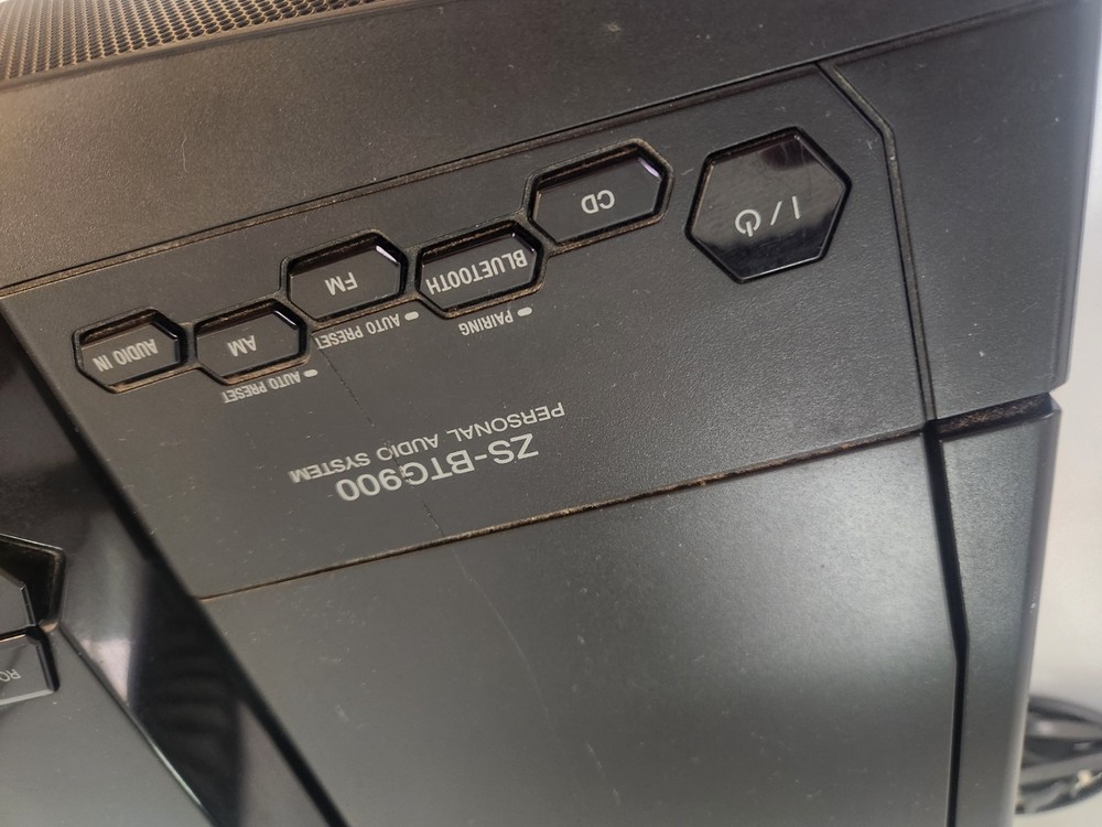 The Sony SZ-BTG900 Personal Audio System is a portable speaker system featuring Bluetooth connectivity for easy wireless audio streaming. The sleek rectangular design in black color makes it a stylish addition to any room or on-the-go. With the convenience of Bluetooth connectivity and the option for AUX audio inputs, this Sony model offers both versatility and high-quality sound for an enhanced audio experience. Perfect for music lovers looking for a compact and powerful speaker system from a trusted brand like Sony. FM/AM Features DO NOT work. The unit operates well, Speakers are clear. CD works perfectly, Bluetooth and Audio-In both work well. See photos for condition.
