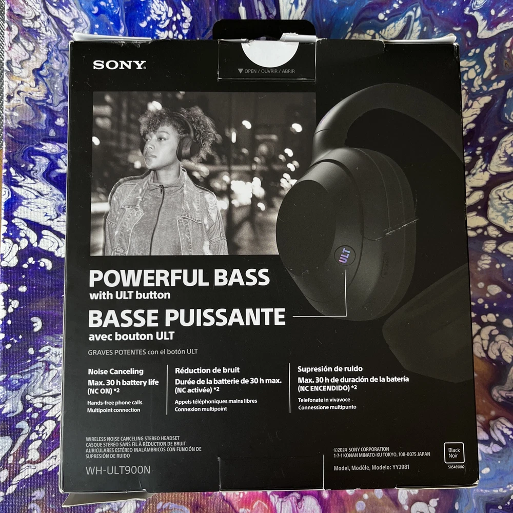 New Open Box Never used!!! MASSIVE BASS: Press the ULT button to boost your bass & feel the incredible power of sound PREMIUM NOISE CANCELING: Get closer to your favorite music with dual noise canceling technology & V1 processor COMFORTABLE DESIGN: Unique thermo-foaming design for smooth cushions that comfortably mold to your ears PERFECT TRAVEL COMPANION: Swivel fold design and compact carry case for portable packing SONY ULT WIRELESS HEADPHONES: LONG BATTERY LIFE & QUICK CHARGING: Up to 30-hours battery life with quick charging (3 min. charge for up to 90 mins of music) CRYSTAL CLEAR HANDS FREE-CALLING: Enjoy clearer calls and better conversations with beamforming mics that pickup your voice MULTIPOINT CONNECTION: Connect two devices at once LESS WIND NOISE: Mesh around the mic reduces wind and background noise so you can focus on your favorite music and conversations INTELLIGENT WEARING DETECTION: A capacitive sensor knows when your headphones are on and off for instant pause. New- Open box!!!! Never used