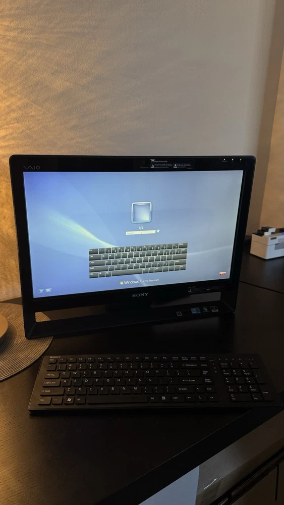 Sony VAIO J Series All-in-One desktop computer, model VPCJ117FX. Specs / Condition: • Intel Core i5 processor • Windows 7 installed • 21.5” touchscreen display (touch function is in working) • System powers on and boots, but Windows is password protected • Keyboard works properly • Includes original keyboard and power adapter (as shown) Important notes: • Touchscreen function • Windows login password is unknown • Internal specs (RAM, storage) are unknown due to locked system • Sold AS IS, for parts or repair / restoration PLEASE REVIEW ALL PHOTOS CAREFULLY. ASK QUESTIONS BEFORE PURCHASING. NO RETURNS.