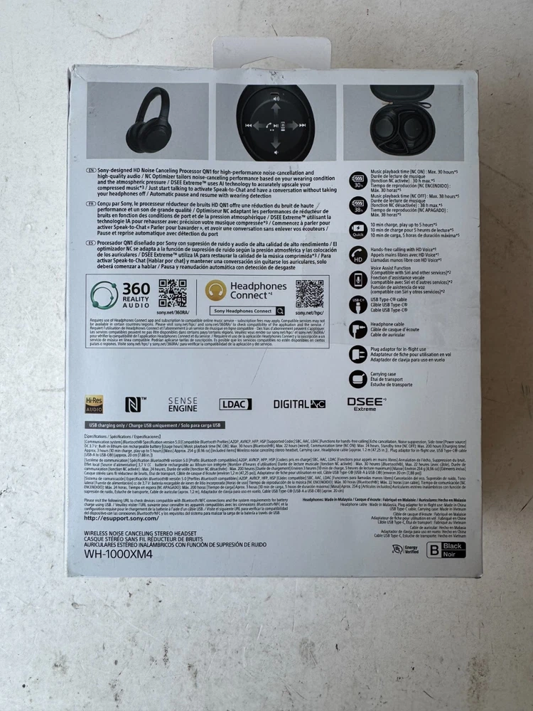 Sony WH-1000XM4 Headphone Black Noir Wireless Foldable Premium Noise Canceling Description Sony WH-1000XM4 Headphone Black Noir Wireless Foldable Premium Noise Canceling . Product Detail • Brand : Sony • Model : Sony WH-1000XM4 • Color: Black Noir • Type : Headphone Please message me if you have any questions.