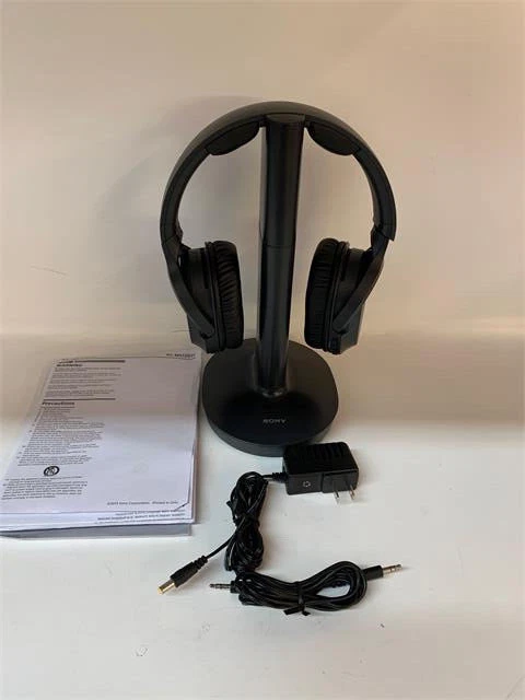 RF400 Wireless Home Theater Headphones Headphone P/N: WHRF400 Manufacturer: Sony Zone out and tune in to uncompromised sound Lose yourself in a world of quality sound with these home theater wireless headphones. Noise-reducing technology keeps the wireless signal free of interference from other electronic devices, so you can enjoy your favorite film, soundtrack, or game with crystal-clear sound. Wireless range The enhanced range from the transmitter dock lets you move from room to room without losing an audio connection. Up to 20 hours of play time Enjoy your favorite shows, music and films without having to charge for up to 20 hours. 1.57" drivers Whatever you're watching, hear every detail in crystal clarity with dynamic 1.57" drivers. Freedom to roam, throughout your home. With a long battery life and wide reception range, you can take your favorite films and programs with you as you wander around your home - so you'll never miss out on the action again. Surround yourself with high-quality sound With a closed cap design, dynamic drivers, and Voice Mode button, sound quality is increased while noise and distractions from the outside world are reduced-leaving you to enjoy your entertainment in peace. Dynamic detail with 1.57" drivers From thunderous booms to soft whispers, the large 1.57" drivers will make sure that you experience every detail in clear and precise sound quality. Vocal clarity with Voice Mode Enjoy clearer dialog for shows and movies with a touch of the Voice Mode button. No distractions The Noise Reduction System helps you block out the outside world, so you can immerse yourself in a world of entertainment. Relax and get comfortable Whether it's a streaming binge or a movie marathon, these soft and secure headphones are optimised for comfortable, long listening - so any family member can sit in total comfort for hours. Soft ear pads Designed for long wear, the cushioned and comfortable ear pads are perfect for evenings spent relaxing on the sofa. Secure fitting The ear pad twist-and-tilt feature means that the headphones will comfortably fit the whole family-even those with the smallest ears. Easy to charge When the battery gets low, simply place them back on the receiver cradle to charge. Set up, sit back Once these headphones are out of the box, simply connect the transmitter dock to your TV with the supplied cable, and sit back as the headphones sync to the dock. Specifications: UPC: 027242914001 SKU: 1049293340 Brand: Sony MPN: WHRF400 Product Type: Headphone Form Factor: Ear-cup Wireless Technology: Bluetooth Impedance: 32 Ohm Weight (Approximate): 9.70 oz Connectivity Technology: Wireless Product Color: Black Wireless Operating Distance: 150 ft Maximum Frequency Response: 22 kHz Minimum Frequency Response: 10 Hz Driver Size: 1.57 Maximum Battery Run Time: 20 Hour Earpiece Design: Over-the-ear Terms and Conditions Domestic (US) Orders Domestic orders are shipped within 2 business days from receipt of payment. Please be aware that your order may be processed on the following business day after you check out. Domestic shipments are sent via standard UPS or Fedex service. Standard shipping service may not be available to some addresses. Additional charges may apply. We do not provide expedited shipping or order processing. Orders to PO boxes, Alaska, Hawaii, Puerto Rico, US protectorates, and military addresses require an additional 3-4 business days of processing time before shipment. International Orders You are purchasing a product designed for use in North America. The power and transmission requirements may be different then in your local country, please make sure to follow all applicable use and safety regulations. Import duties, taxes and charges are not included in the item price or shipping charges, they will be billed to the recipient. These charges are usually collected by the shipping company at the time of delivery. On customs documents we do not mark merchandise price below the sale price, or mark items as "gifts". Government and shipper regulations prohibit such behavior. International orders are shipped via various air cargo carriers which are selected by our warehouse when your order is processed. International orders require 3-4 business days of processing time before shipment. Shipments to PO boxes must be sent via postal services. Additional charges may apply. Heavy or over-sized shipments may not be eligible for export to some countries or incur additional charges. Please contact us before placing your order if you require combined shipping for multiple items. Returns, Refunds, and Cancellations We stand by the items we sell and will issue a full refund including freight charges on any defective or ship damaged item. Please inspect your item as soon as it arrives, we only accept reports of shipping damage within 14 days from delivery. All returns must be shipped to the appropriate facility for processing. Before returning a product, please contact us to receive return instructions. Items must be returned within 30 days from purchase. Refunds may take up to 21 days to be issued after your return is received. When you submit your payment, your order will be automatically processed. We may no longer be able to change or cancel your order. After the order is received, we cannot update your shipping address address. The order will be shipped to the address you submit with your payment. Scroll down and click on "ask a question" if you would like to send us a message. The product's description is automatically generated with information from manufacturer catalogs and other content providers. Please excuse any image and typographical errors.