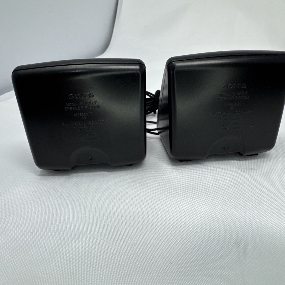 Tested works great The Sony Walkman SRS-7 Vintage Stereo Mini Speaker is a portable speaker system designed specifically for Sony devices. With a sleek black color and stereo sound quality, this speaker provides a convenient and high-quality audio experience on the go. Made in Japan, this wired speaker system features a headphone jack for easy connectivity and is Perfect for music lovers looking to enhance their listening experience with vintage technology.
