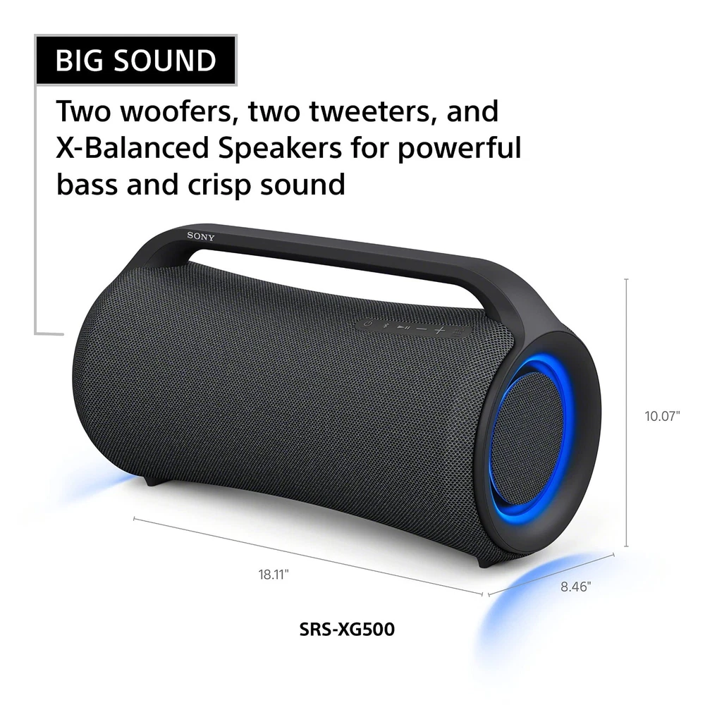 Brand: Sony Model: Sony XG500 Color: Black Type: Portable Speaker System Connectivity: Bluetooth
