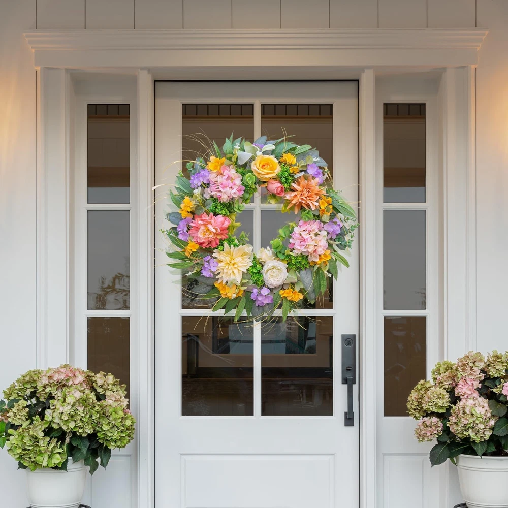 Spring Wreaths for Front Door, Soomeir Summer Peony Outdoor Wreath, Green Floral Door Decor for All Season Home Wall Wedding Farmhouse Holiday Product Details Color: Hydrangea Wreth With 12 Inch Hanger Brand: Soomeir MPN: christmas wreath UPC: Does not apply EAN: Does not apply Color: Hydrangea Wreth With 12 Inch Hanger Brand: Soomeir Material: Silk Mounting Type: Door Mount Shape: Round Product Dimensions: 6"D x 24"W x 24"H Occasion: Christmas Manufacturer: soomeir Color: Hydrangea Wreth With 12 Inch Hanger Brand: Soomeir Material: Silk Mounting Type: Door Mount Shape: Round Product Dimensions: 6"D x 24"W x 24"H Occasion: Christmas Manufacturer: soomeir Item Weight: 1.9 pounds Country of Origin: China Item model number: christmas wreath Date First Available: January 26, 2024 Gorgeous Wreath! Soomeir spring wreaths are expertly arranged by professional florists using hydrangea, peonies, roses, and various artificial greenery. The colors of the flowers are extremely vibrant, making them the perfect colors making your home stand out on the street. Graceful And Eye-Catching You'll be amazed by the fullness and beauty of this hydrangea wreaths! The elegant flowers and realistic greenery create a natural and fresh atmosphere. It can be hung not only at the front door, living room, fireplace, cabinets, walls, windows, stairs, balcony, but also as a centerpiece, matching all types of home decor styles all year round. Durable&Sturdy The spring wreath for front door made of artificial silk flowers is handcrafted and flowers are securely attached to a vine base. It's lightweight and easy to hang on a typical wreath hanger. Even with long-term outdoor use, there's no need to worry about fading or deformation of the wreath. Perfect size The spring Hydrangea wreath's diagonal width should be 22 inches, and its depth should be 5-6 inches. Due to shipping reasons, we've packed the wreath into a smaller box. Please adjust the wreath according to the instructions on the card before hanging it, and you'll get a full and beautiful wreath! Out Of The Box It only takes a couple of minutes to fluff up the spring wreath and make it look as good as new, so full and beautiful! We've also included the high-quality packaging box,for easy transport and storage, and they can even be used as a gift.