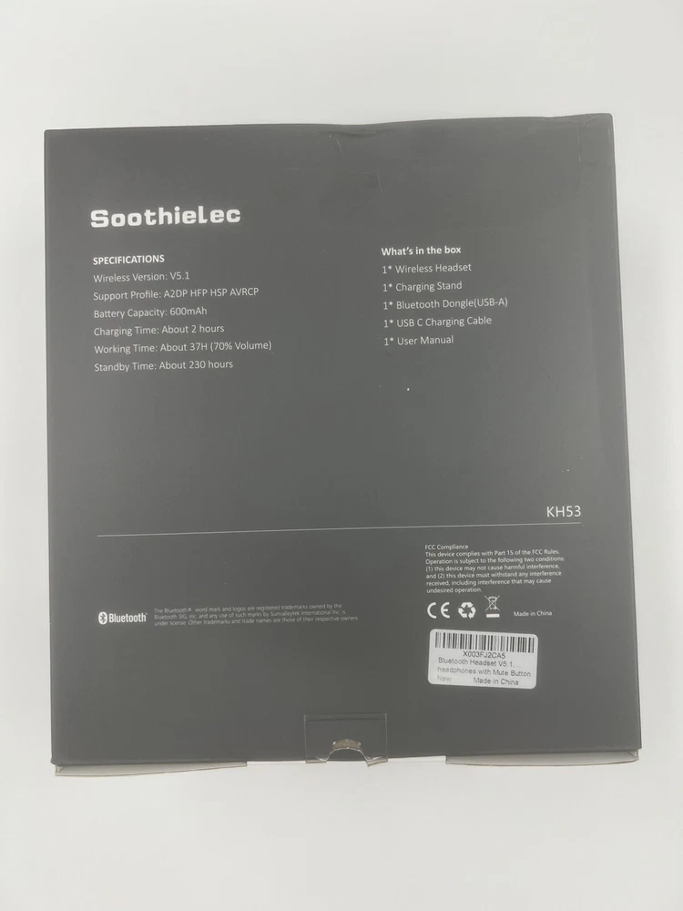Wireless Technology:BluetoothBrand:SoothielecModel:KH53Color:BlackFeatures:Active Noise CancellationType:Ear-Cup (Over the Ear)Connectivity:Bluetooth, USB