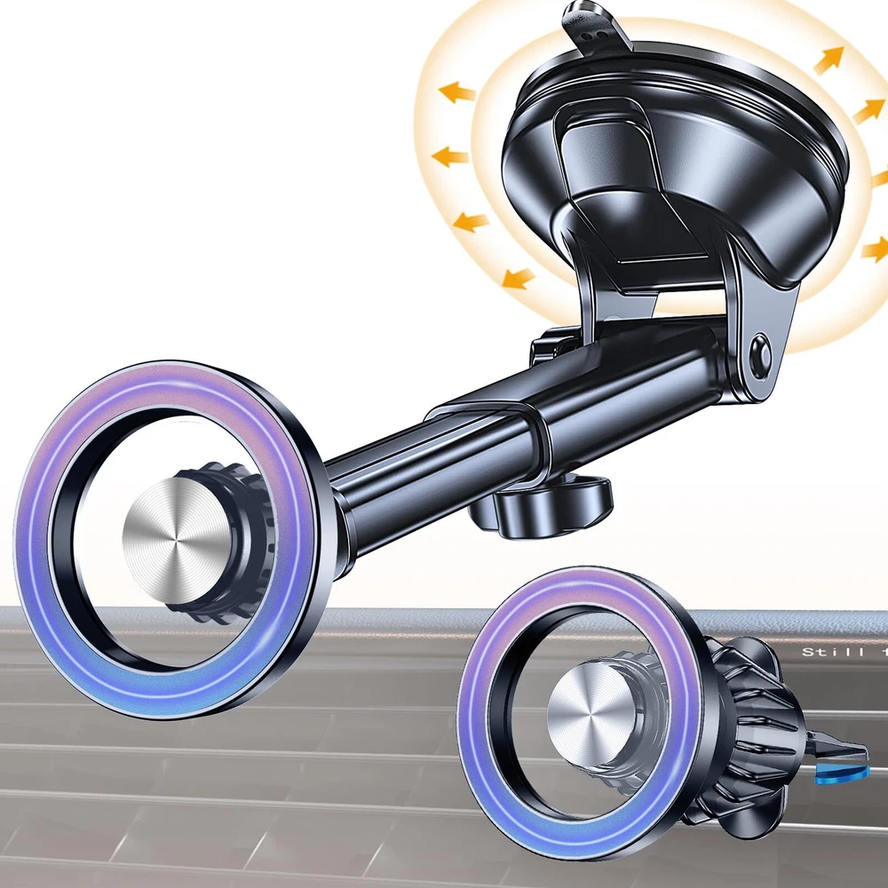 【2 in 1 fits Magsafe Magnetic Cell Phone Holder for Car】 - You are not sure which mounting method is more suitable for your car? No worries! 2 base suction cup/vent mount base magnetic car mount for flexible placement. Horizontal and vertical vents, dashboards and tables, all places work perfectly. In addition, you can choose to avoid problems caused by environmental influences due to low winter temperatures and hot summers. Suitable for all cars, pickups, suv's, cabs, etc 【STRONG MAGNETIC MagSafe Car Mount】 - This powerful magnetic phone holder can create a powerful attraction that firmly supports your device while allowing you to drive without distraction. it easily and securely holds your phone through bumps, sharp turns or even sudden stops, no worrying of dropping your phone. 【Adjust Car Holder Mount As You Wish】 - The ball joint and arm of this mobile phone car mount are 10 x sturdier than normal ones. Adjustable 270° Telescopic Arm/360° Rotation Ball Joint/Extendable Arm, allow you to rotate your phone to landscape or portrait and adjust your phone to a position angle that meets your need. During driving, you can adjust this car cell phone holder according to your front passenger seat to avoid obstructing the sight and ensure driving stability and safety. 【Secure Stable Install】 - The car cell phone mount features an extra strong suction cup . the reusable suction cup attaches firmly to the car windshield directly reusable suction cup combo provide a powerful hold and superior sticking strength on the dashboard. 【Complete Package Included, For Every Situation】: 1 * MagSafe Car Mount; 1 * Sticky Suction Cup Base; 1 * Sturdy Vent Clip; 1 * Thick metal ring; 1 * Considerate User Manual. We offer prompt efficient after sale service to ensure a happy purchasing. For any issue among the using of our product, you are warmly welcomed to contact us by e-mail. Our professional customer service is always there for your until you are satisfied with the solution.
