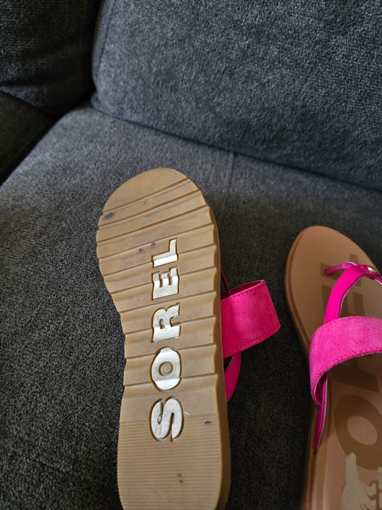 The Sorel Ella Li leather and suede thong sandals in size 8 are a stylish and comfortable option for casual wear. With a slip-on closure and a flat heel, these pink suede sandals feature a leather lining for added luxury. Crafted by the renowned brand Sorel, these sandals are designed with a thong style and a wide fit for maximum comfort. Perfect for adding a touch of elegance to any casual outfit, these Sorel sandals are a must-have for any woman's shoe collection.