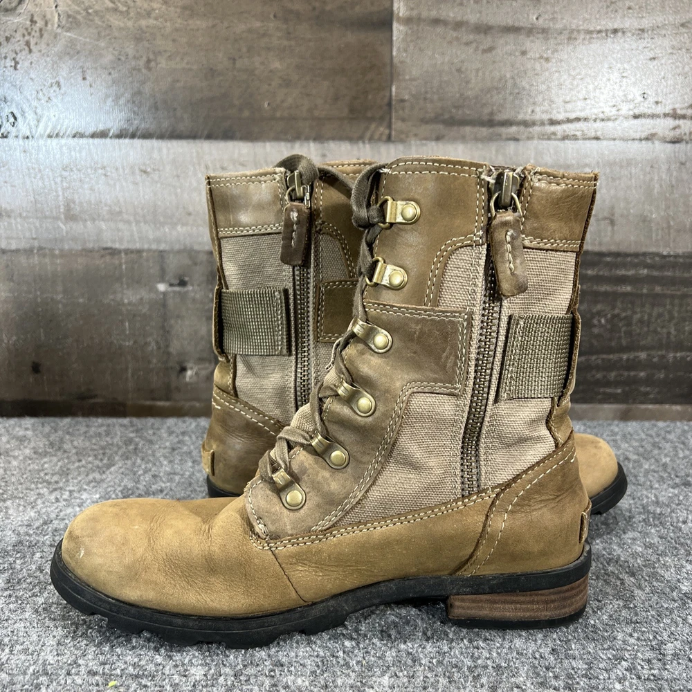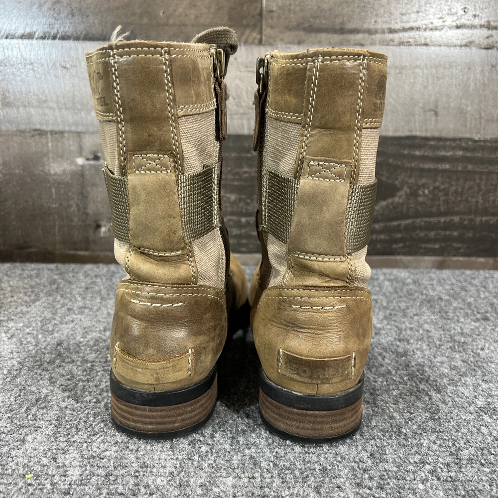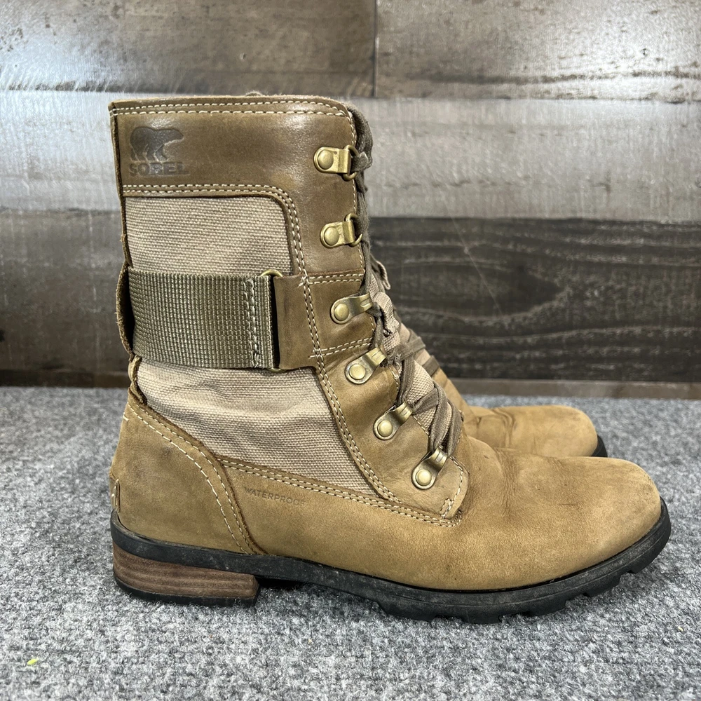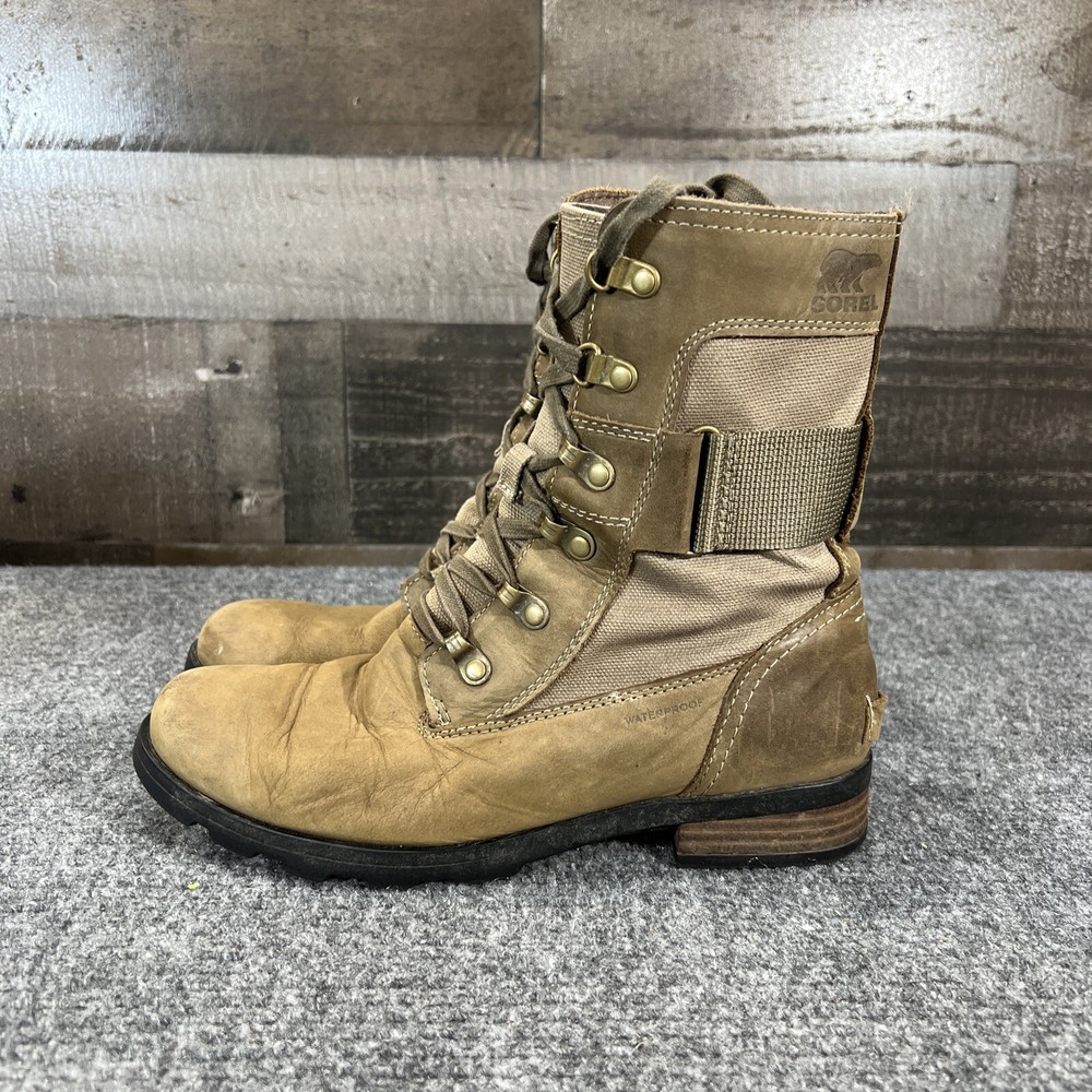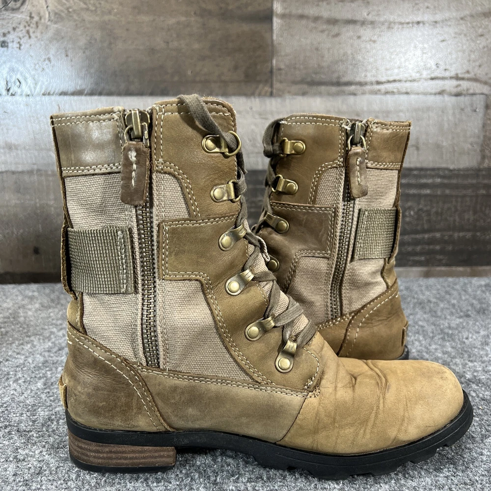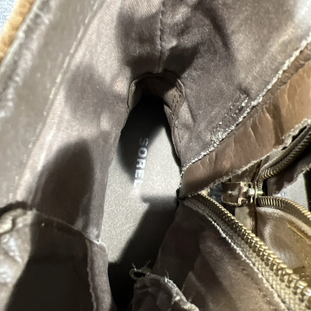 Sorel Leather Waterproof Boots Emelie Conquest Brown Zip Up Womens 7.5