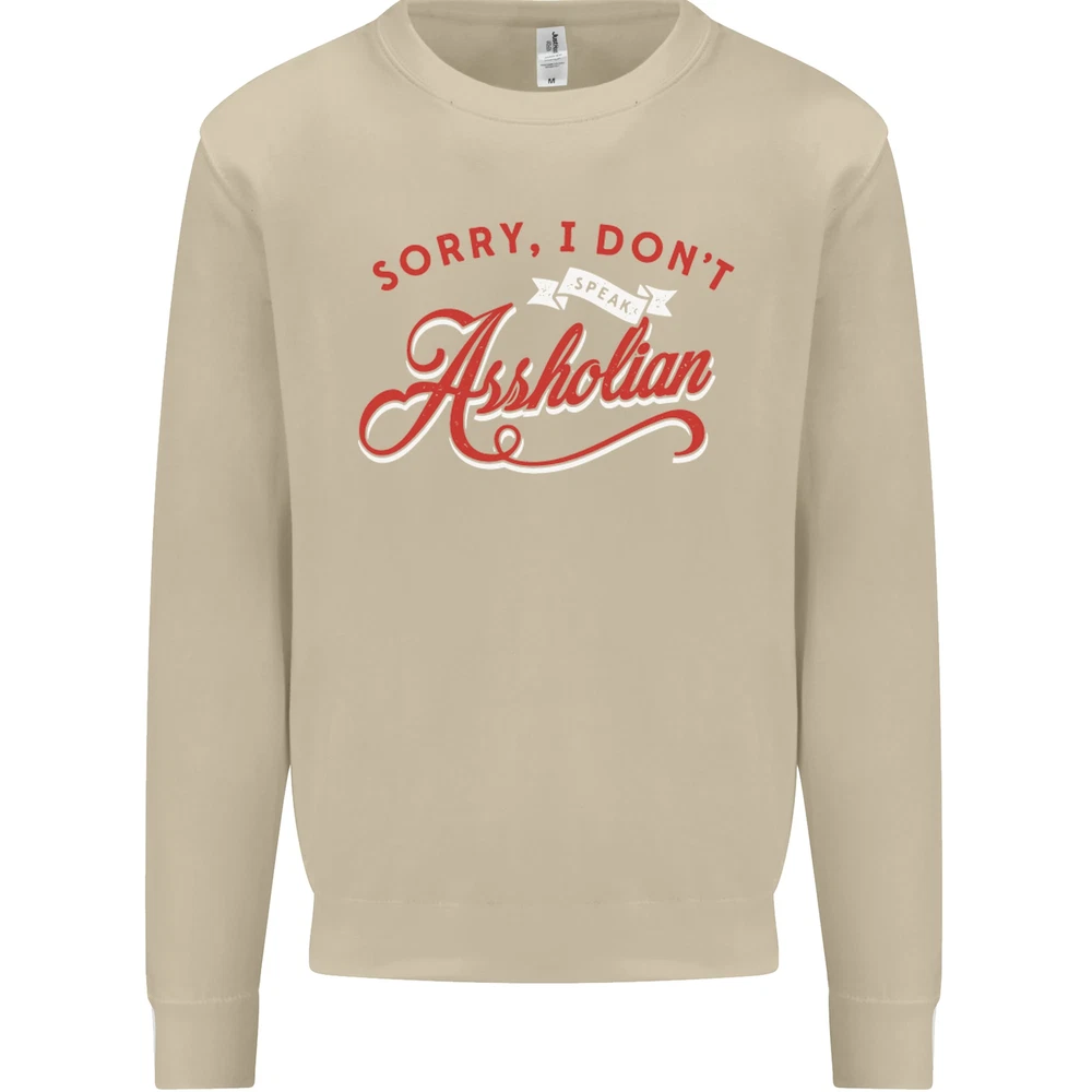Sorry I Dont Speak Assholian Funny Slogan Mens Sweatshirt Jumper Sizes: S 36" M 40" L 44" XL 48" 2XL 52" 3XL 56" 4XL 60" 5XL 64" Professionally printed onto an adults AWDis Sweatshirt (Sweat) JH030N 280gsm Unisex Twin needle stitching detailing Ribbed cuff and hem Soft cotton faced fabric creates ideal printing surface Printed with eco-friendly inks that are safe to the skin and children Worldwide Responsible Accredited Production (WRAP) certified production Training shoe with low-to-the-ground feel. Upper: Welded-TPU support overlays in the heel, toe cap and quarter. Dual mesh provides closed mesh in the lower quarter and breathable mesh throughout. Texture screened toe cap for protection. Description & Size Chart Adults AWDis Sweatshirt (Sweat) JH030 280gsm Unisex Twin needle stitching detailing Ribbed cuff and hem Soft cotton faced fabric creates ideal printing surface Worldwide Responsible Accredited Production (WRAP) certified production Printed with eco-friendly ink, which are safe to the skin and children. Alternative Styles This design (where appropriate), and many more like it, are available on the following styles: Best Selling Collections On the Darkside Birthdays Pets \ Animals Gym & Fitness Father's Day Sport Funny Biker Special Occasions Martial Arts LGBT Christmas Shipping All orders are shipped within one working day. Due to circumstances out or our control, or busy times of the year, this could be extended to two working days. Returns Returns are accepted within 60 days of delivery providing that the item is returned in the original condition and all tags are intact (where applicable) and has not been worn. Please ensure that the item is returned clean and free of pet hair. To return an item please use eBay's return system, which can be located by finding your order in your account and selecting the return option. eBay integration by
