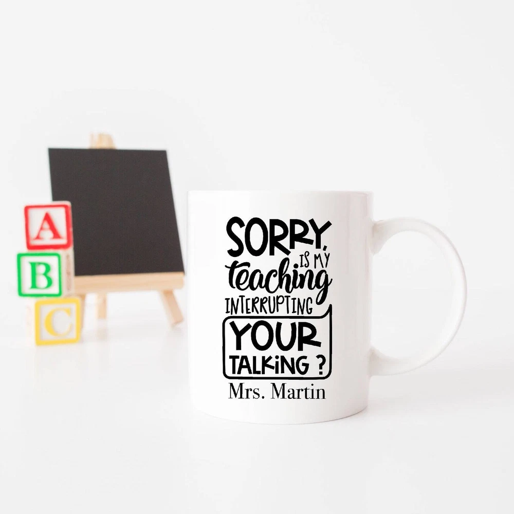 Sorry Is My Teaching Interrupting Your Talking? Funny Teacher Mug Custom Teacher Product Details.. This high quality 11oz. ceramic white mug has a premium hard coat that provides crisp and vibrant color reproduction sure to last for years. Perfect for all hot & cold beverages. The highest quality printing possible is used. It will never fade no matter how many times you wash it. Material: 100% Ceramic. Print both sides. Dishwasher and Microwave Safe. High Gloss + Premium White Finish. Printed in the U.S.A. Personalized & Custom. We support personalized and custom mug to add custom, when placing an order, you can add notes to the "order note" in shipping address section. Also you can contact us directly via message. Shipping Info. Ready to ship in 1 to 2 business days, All products are made-to-order and proudly printed in the United States. Shipped by USPS and DHL, You will receive your order in 5-7 days. Replace & Refund. All products are defective during shipping broken, chipped will be replaced free of charge. You are not satisfied with the product, we will refund 100% money to you. If any other issues arise, please do not hesitate to message, we would be more than happy to assist you.