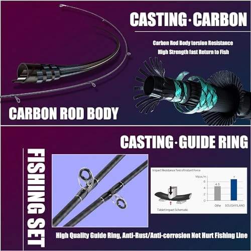 Menu 1. We require immediate payment. 2. We currently accept payment via eBay managed payments only. 3. Once payment is cleared, we will dispatch your shipment within 1-3 business days. Please refer to the "Shipping" tab for more information regarding shipping speed to your destination. Souagyilang Baitcasting Fishing Rod Reel Combo,2 Pieces Medium Heavy Baitcasting Pole with High Speed Casting Reel Baitcaster Combo Product description Stronger - 's new casting reels are equipped with super strong stainless steel spindles, precision machined brass gears, diamond shaped ceramic wire guides, and CNC aluminum spools for rugged durability, and a rubberized handle that provides a comfortable grip and resists corrosion for added durability. Powerful and Smooth: 9 superior stainless steel double-shield ball bearings + 1 stainless steel one-way bearing make the casting reel offer extra smooth performance, anti-corrosion and long-lasting. Magnetic brake system allows adjustable fishing drag power.It can provide 15lbs drag power for gaining preys. HIGH QUALITY GUIDE RINGS: The rod guide rings are made of stainless steel, which is firm and beautiful and also effectively enhances the protection of the rod section. The smooth surface of the guide ring can minimize friction and not easily hurt the fishing line. Corrosion-resistant, it can easily cope with sea fishing. Light Weight:The whole rod is designed with 45 degree cross carbon cloth and 36 ton carbon fiber to improve the strength and flexibility of the rod. improving the impact resistance of stabbing fish. The high elastic fiber body makes the rod lightweight, allowing for smoother casting at longer distances and a wider range of use. Portable:This rod and reel combo is so good looking and powerful that you can take it anyw you want to fish for a wide range of species, including bass, mahi-mahi, trout, and popular inshore species such as redfish. Of course, this rod set is also a choice of great gift. PLEASE MESSAGE US IF YOU HAVE ANY OTHER QUESTIONS, AND MANY THANKS FOR READING ALL OF THIS. Copyright ©#. All Rights Reserved.