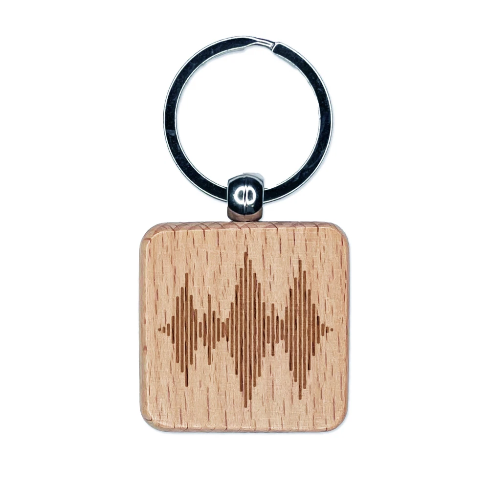 Sound Waves Music Engraved Wood Square Keychain Tag Charm
