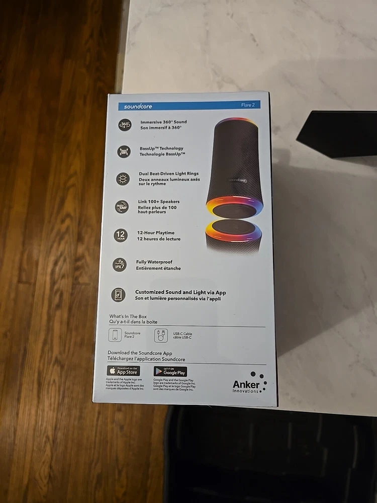 Soundcore Flare 2 Bluetooth Speaker Outdoor LED Party Speaker 360° Sound IPX7. Condition is New. Shipped with USPS Ground Advantage.