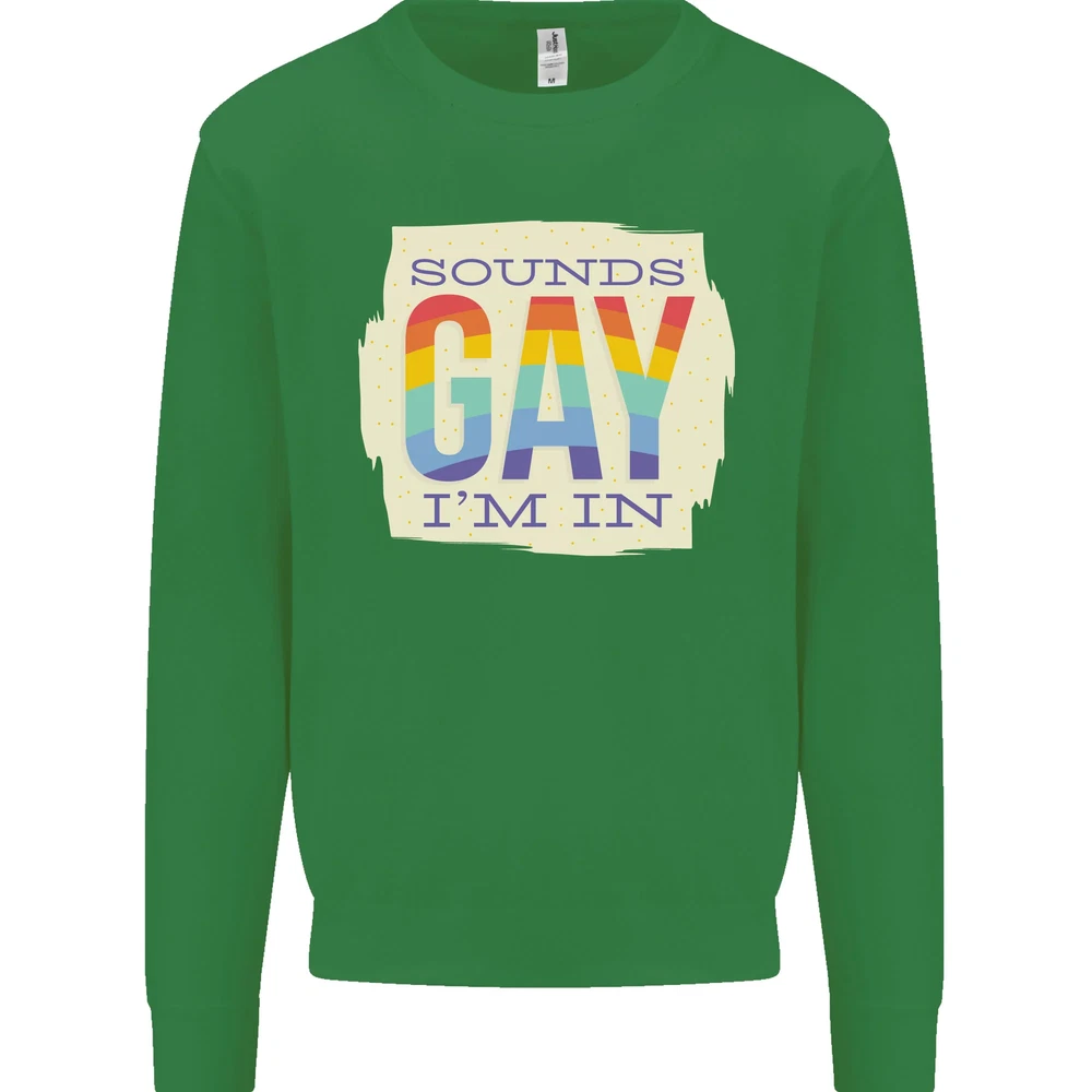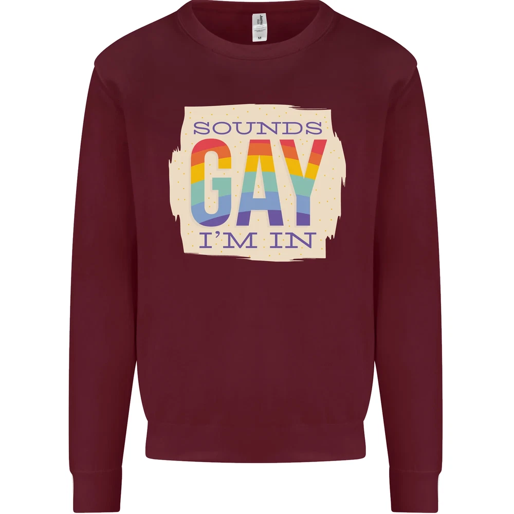 Sounds Gay Im In Funny LGBT Gay Pride Day Mens Sweatshirt Jumper None Training shoe with low-to-the-ground feel. Upper: Welded-TPU support overlays in the heel, toe cap and quarter. Dual mesh provides closed mesh in the lower quarter and breathable mesh throughout. Texture screened toe cap for protection. Description & Size Chart Adults AWDis Sweatshirt (Sweat) JH030 280gsm Unisex Twin needle stitching detailing Ribbed cuff and hem Soft cotton faced fabric creates ideal printing surface Worldwide Responsible Accredited Production (WRAP) certified production Printed with eco-friendly ink, which are safe to the skin and children. Alternative Styles This design (where appropriate), and many more like it, are available on the following styles: Best Selling Collections On the Darkside Birthdays Pets \ Animals Gym & Fitness Father's Day Sport Funny Biker Special Occasions Martial Arts LGBT Christmas Shipping All orders are shipped within one working day. Due to circumstances out or our control, or busy times of the year, this could be extended to two working days. Returns Returns are accepted within 60 days of delivery providing that the item is returned in the original condition and all tags are intact (where applicable) and has not been worn. Please ensure that the item is returned clean and free of pet hair. To return an item please use eBay's return system, which can be located by finding your order in your account and selecting the return option. eBay integration by