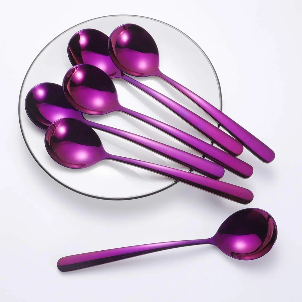 Store New Arrivals Add to Favorite View Feedback Contact Soup Spoons 6-Pack 18/10 Stainless Steel Large and Heavy Duty round Spoons Elegance Series 7 Inch Long 1.9 Ounces Weight by (Purple Soup Spoons) Description Style Modern, Custom, Classic Color purple soup spoons Material Stainless Steel Material Type Stainless Steel Item Weight 1.9 Ounces Style Name Modern, Custom, Classic Is the item dishwasher safe? Yes Product Dimensions 7"L x 1.65"W Item Dimensions L x W 7"L x 1.65"W 🍨 Made of High Quality 18/10 (SUS 304) Stainless Steel, extremely durable, Quality . 🍨 Set of 6 pcs, 7 inch long, 1.65 inch wide. Titanium plating of purple color. Shining and Beautiful. 🍨 Ergonomic and Elegance design, the best choice of soup spoons for adults. Suit for soup, bouillon, porridge and so on. 🍨 Heavy duty, mirror polishing, smooth edge and no dent at all. The handle is thick and smooth and good handling. 🍨 Dish-washer is safe and easy to clean, suit for Home, Restaurant, Cafe Material:18/10 (sus 304) food grade Stainless Steel Applicable Occasions:Home and Kitchen,Picnic,Camping,Office,Restaurant Package Includes:6 pcs spoons Net weight: 1.9oz Size: 7 inch long, 1.65 inch wide color: purple ABOUT US We offer the best prices around on high quality products. Our E-store includes media such as books, movies, music and games while offering electronics, toys, sporting apparel, clothing, tools, general home, garden items and more. SHIPPING We are always working hard to ensure your package arrives as soon as possible. Please understand that some factors like weather, high postal traffic, and the performance of shipping companies are outside of our control. We offer free shipping to the lower 48 states and ship within 2 business days of payment, usually sooner. We do not accept P.O. Boxes. Please provide a physical address. For shipping outside of the continental USA, we only use eBay's Global Shipping Program.The item is shipped to KY and then sent to the rest of the world. International customers are responsible for all duties and taxes. Continue to check out in order to calculate costs for shipping the item to your country. Messages regarding eBay's Global Shipping Program MUST be directed at eBay EXCLUSIVELY. RETURNS We offer a 30-Day Return Policy on items which you are not completely satisfied with. You have the option for a full-refund or an exchange of the item. No returns are available on items shipped outside of the USA. PAYMENT We accept PayPal. CONTACT US This page content is yet to come Please ad us to your favorite seller and visit again later Thank You CUSTOMER SATISFACTION We try our very best to make sure every customer is completely satisfied. If there's a problem, message us! We're happy to help. WE ACCEPT Copyright © 2021 AutoDS. | All Rights Reserved