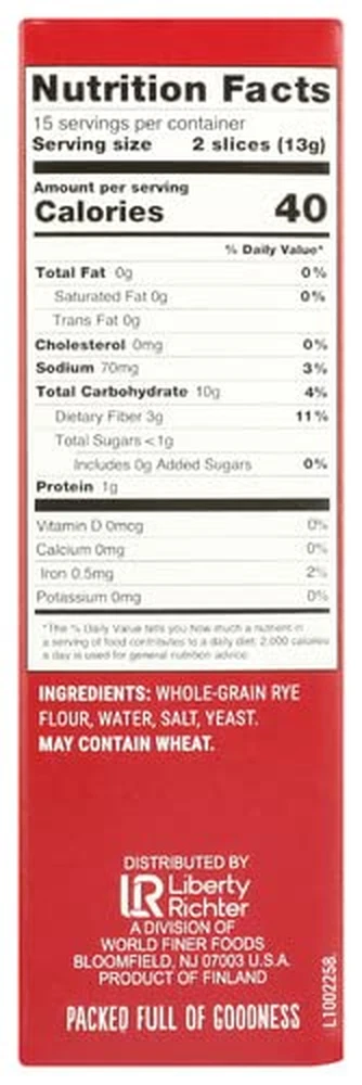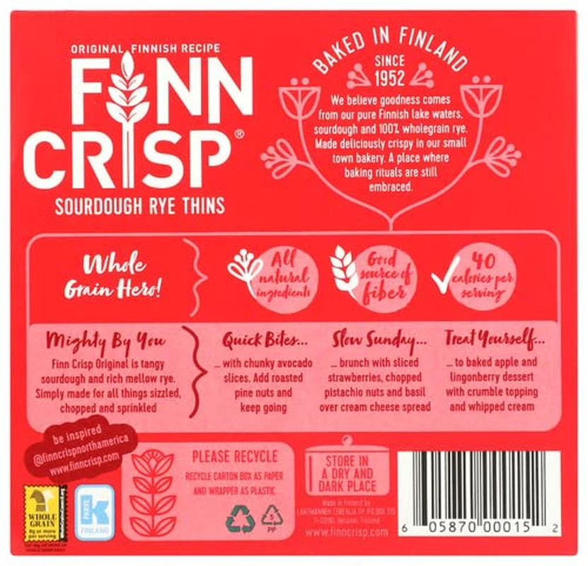 Store New Arrivals Add to Favorite View Feedback Contact Fast deliveries to the customer's home Quality customer service John Make the customers happy! Sourdough Rye Thins, Original Crispbread, 7 Ounce Boxes (Pack of 9) Description High Fiber Sourdough Thins: This classic whole grain rye recipe was developed in 1952 and still remains the most loved flavor by FINN CRISP fans for its versatility and great taste Crisp Bread: Our thin crisps are an ideal way to start your morning, as a light snack between meals and are irresistible with different toppings for snack platters, charcuterie boards and are a hit for entertaining Finnish Rye Crispbread: The thin shape of our crispbread gives them a delicious toasted cereal flavor; Made with 100 percent wholegrain rye and high fiber; check out our Original, Sesame, Traditional and more Rye Crisp Crackers: We offer a flavorful variety of crispbreads for any occasion; Try our other delicious flavors: Original, Caraway and Multigrain Finn Crisp: The Finn Crisp brand was established in 1952 and with authentic Finnish baking traditions and recipes, we capture the essence of Finland using only pure and simple ingredients The Finn Crisp brand was established in 1952, when Finn Crisp thin crisps were launched at Helsinki Summer Olympic games. Simple, pure and powerful, the Finn Crisp captures the essence of Finland for millions of people worldwide who care about eating healthily. Finland has long traditions in crispbread consumption and the crispbreads have been known in every household since the 1800’s. During the heyday of agrarian society, in the western part of Finland, it was traditional to bake bread only twice a year: in the autumn when the crops were new and in the spring, when the fresh water flowed freely in the streams and rivers after the winter. The crispy and nutritious bread was easy to store as it remained delicious for months. Today the Finn Crisp range of crispbreads features plenty of tasty products from multigrain thin crispbreads to round crispbreads to original thin crisps flavored with caraway, garlic or coriander. The new Finn Crisp Plus range provides you an even tastier and healthier crunch. All our crispbreads are delicious yet nutritious. Item model number 00727800 Product Dimensions 15.6 x 5.9 x 5.4 inches; 4 Pounds Item Weight 4 Pounds Allergen Information Wheat Free Flavor Name Original Package Information Box Flavor Original Is Discontinued By Manufacturer No Size 7 Ounce (Pack of 9) ABOUT US We offer the best prices around on high quality products. Our E-store includes media such as books, movies, music and games while offering electronics, toys, sporting apparel, clothing, tools, general home, garden items and more. SHIPPING We are always working hard to ensure your package arrives as soon as possible. Please understand that some factors like weather, high postal traffic, and the performance of shipping companies are outside of our control. We offer free shipping to the lower 48 states and ship within 2 business days of payment, usually sooner. We do not accept P.O. Boxes. Please provide a physical address. For shipping outside of the continental USA, we only use eBay's Global Shipping Program. The item is shipped to KY and then sent to the rest of the world. International customers are responsible for all duties and taxes. Continue to 'check out' to calculate costs for shipping the item to your country. Messages regarding eBay's Global Shipping Program MUST be directed at eBay EXCLUSIVELY. RETURNS We offer a 30-Day Return Policy on items in which you are not completely satisfied with. You have the option of a full-refund or an exchange of the item. No returns are available on items shipped outside of the USA PAYMENT We accept PayPal. CONTACT US This page content is yet to come Please ad us to your favorite seller and visit again later Thank You CUSTOMER SATISFACTION We try our very best to make sure every customer is completely satisfied. If there's a problem, message us! We're happy to help. WE ACCEPT