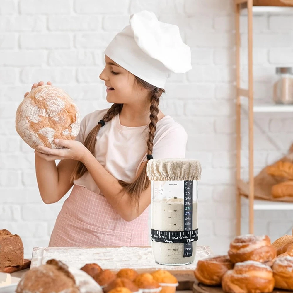 Store New Arrivals Add to Favorite View Feedback Contact Sourdough Starter Jar, 24Oz Sourdough Bread Baking Supplies Fermentation Kit, Glass Jars Bread Making Accessories with Date Marked Feeding Band, Thermometer, Cloth Cover & Metal Lid Description Closure Type Airtight Lid Capacity 1.5 Pounds Unit Count 1.0 Count Item Volume 24 Fluid Ounces Item Package Quantity 1 Item Form Jar Material Glass Is Dishwasher Safe No Package Dimensions 9.02 x 4.8 x 4.65 inches Number of Sets 1 Item Weight 1.28 pounds Size 24oz-1pcs Material Feature Food Grade Recommended Uses For Product Bread, Baking supplies Is Microwaveable No Special Feature Airtight Lid Container Shape Cylindrical Product Care Instructions Hand wash, airtight lid recommended, avoid extreme temperature changes, and do not expose to direct heat or freezing temperatures. Material Type Free Lead Free, BPA Free Perfect Sourdough Starter Jar :The sourdough starter kit is specifically created to simplify the process of starting a sourdough culture, making it suitable for both beginners and experienced bakers. It includes a long-handled spatula, temperature sticker, feeding indicator strip, breathable cloth cover, and aluminum lid. User-friendly design:The sourdough jar is both spacious and user-friendly. Adding flour and water to this wide-mouth glass jar is a breeze, and removing the starter is equally easy. The wide mouth is easier to clean. Easy Measurement: Stirring the contents efficiently is made possible with the aid of a spatula, while a temperature sticker allows real-time monitoring of the starter's temperature. Additionally, the Date/time feeding tape helps you keep track of the feeding schedule.It offers hassle-free observation. Premium & Stylish Design: The sour dough starter jar is crafted from strong food-grade glass. It boasts an exceptionally robust airtight lid, ensuring not only the freshness and safety of your food but also facilitating the proper fermentation process. Its sleek appearance will undoubtedly draw admiration from your friends, family, and others, making it a standout addition to your table and any party. Multipurpose Glass Jar: Our multipurpose glass jar is designed for versatility, allowing you to store and ferment various ingredients like sourdough, cookies, rice, cereals, coffee, and nuts. Not only does it provide practical storage, but it also adds an elegant touch to your kitchen decor. Its classic look makes it an ideal gift for sourdough enthusiasts. Product Description The sourdough starter kit is specifically created to simplify the process of starting a sourdough culture, making it suitable for both beginners and experienced bakers. When the starter needs to be stored in the refrigerator, you can use an aluminum lid for sealed storage. The wide-mouth bottle facilitates easy cleaning. Friendly wide mouth and silicone spatula make baking a breeze! ABOUT US We offer the best prices around on high quality products. Our E-store includes media such as books, movies, music and games while offering electronics, toys, sporting apparel, clothing, tools, general home, garden items and more. SHIPPING We are always working hard to ensure your package arrives as soon as possible. Please understand that some factors like weather, high postal traffic, and the performance of shipping companies are outside of our control. We offer free shipping to the lower 48 states and ship within 2 business days of payment, usually sooner. We do not accept P.O. Boxes. Please provide a physical address. RETURNS We offer a 30-Day Return Policy on items which you are not completely satisfied with. You have the option for a full-refund or an exchange of the item. No returns are available on items shipped outside of the USA. PAYMENT We accept PayPal. CONTACT US This page content is yet to come Please ad us to your favorite seller and visit again later Thank You CUSTOMER SATISFACTION We try our very best to make sure every customer is completely satisfied. If there's a problem, message us! We're happy to help.