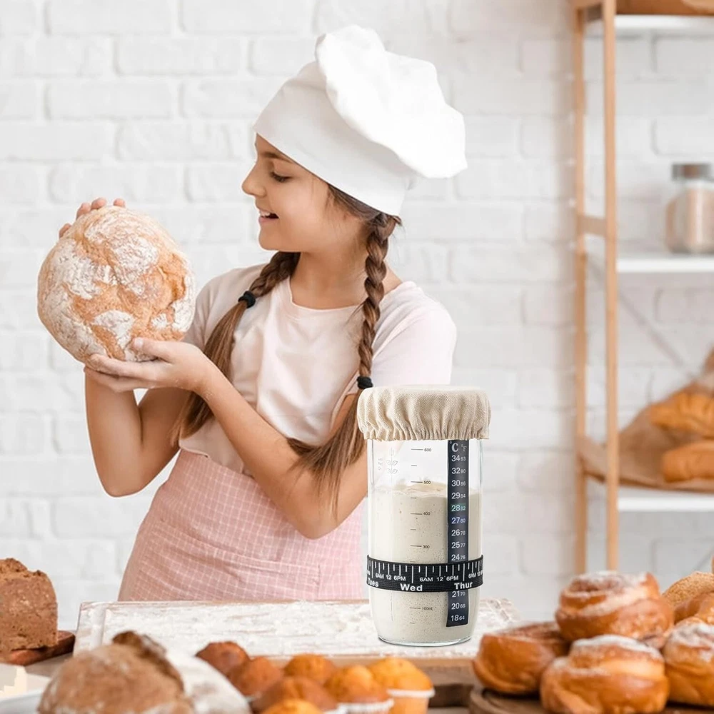 Sourdough Starter Jar 24Oz Sourdough Bread Baking Supplies Fermentation Kit New Size:24oz-1pcs Material: Glass Material Feature: Food Grade Capacity: 1.5 Pounds Recommended Uses For Product: Bread, Baking supplies Perfect Sourdough Starter Jar :The sourdough starter kit is specifically created to simplify the process of starting a sourdough culture, making it suitable for both beginners and experienced bakers. It includes a long-handled spatula, temperature sticker, feeding indicator strip, breathable cloth cover, and aluminum lid. User-friendly design:The sourdough jar is both spacious and user-friendly. Adding flour and water to this wide-mouth glass jar is a breeze, and removing the starter is equally easy. The wide mouth is easier to clean. Easy Measurement: Stirring the contents efficiently is made possible with the aid of a spatula, while a temperature sticker allows real-time monitoring of the starter's temperature. Additionally, the Date/time feeding tape helps you keep track of the feeding schedule.It offers hassle-free observation. Premium & Stylish Design: The sour dough starter jar is crafted from strong food-grade glass. It boasts an exceptionally robust airtight lid, ensuring not only the freshness and safety of your food but also facilitating the proper fermentation process. Its sleek appearance will undoubtedly draw admiration from your friends, family, and others, making it a standout addition to your table and any party. Multipurpose Glass Jar: Our multipurpose glass jar is designed for versatility, allowing you to store and ferment various ingredients like sourdough, cookies, rice, cereals, coffee, and nuts. Not only does it provide practical storage, but it also adds an elegant touch to your kitchen decor. Its classic look makes it an ideal gift for sourdough enthusiasts. Return Policy: We offer a 30 day return policy from the receiving date. Please contact us for a Free Return Label. Please use our return label so it will go back to our supplier and we can do a refund or replacement afterwards. Feedback: Your satisfaction is very important to us! If you have any problem with your order, please contact us and we will do our very best to make you satisfied. As long as you are happy with your purchase, please leave a positive feedback for us. We will always leave you a positive feedback in return. If you have any problem with your purchase, please do not leave a negative feedback. Please Contact us ... and your issue will be solved quickly and positively We are a small family-owned business trying to make a living, not a huge company that does not care ... We will ALWAYS do our best for you!