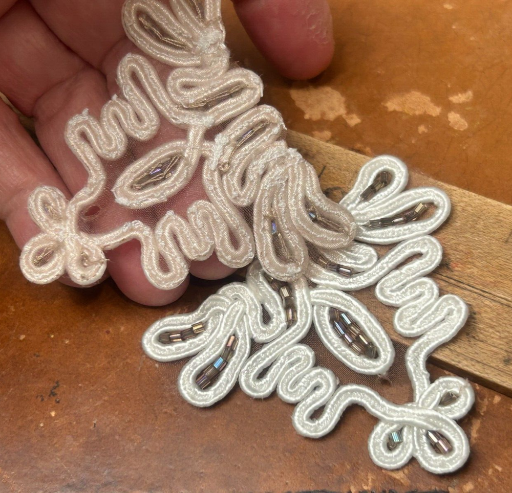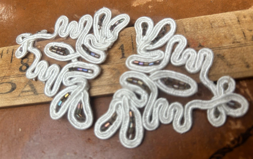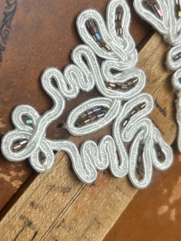 Soutache applique cotton hand-sewn 2x2.5 inch glass beads with pearls 2pcs clearance