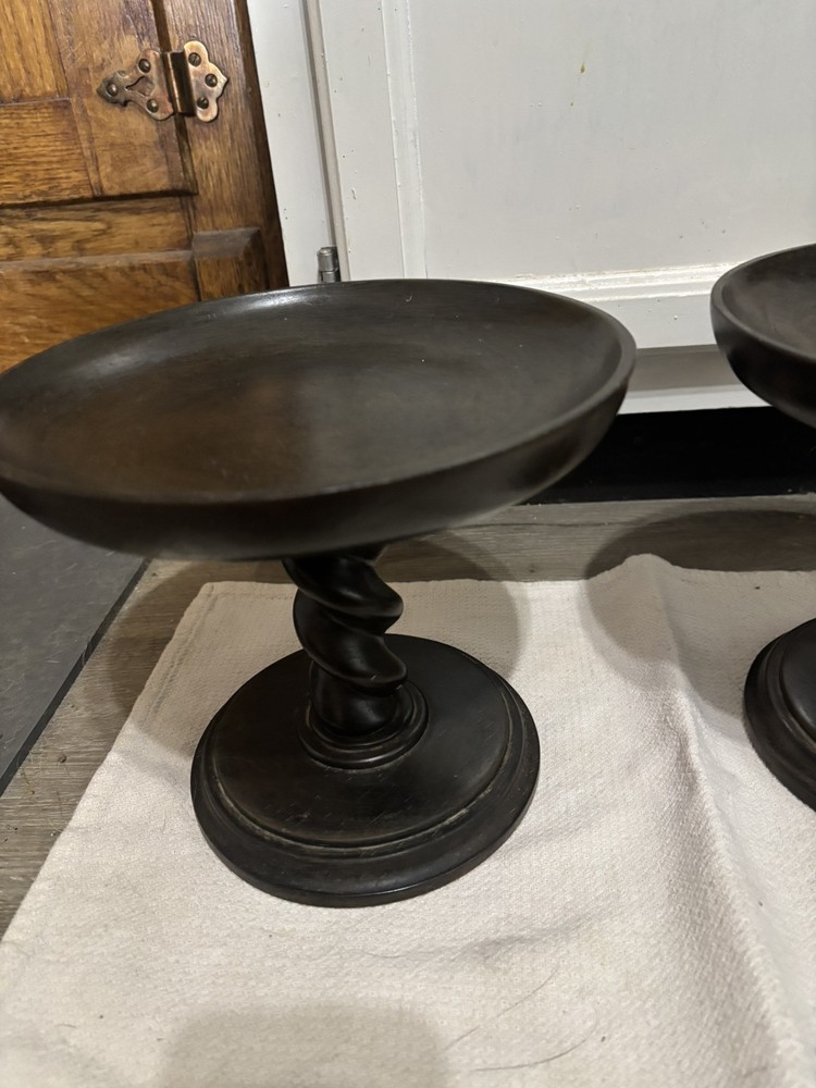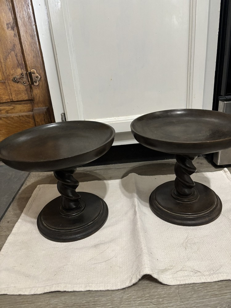 These sturdy pedestals are total game-changers! I've used them for everything from holiday displays to dessert tables. They're surprisingly heavy and solid, with just a couple tiny spots that could use a quick touch-up. So versatile and beautiful!