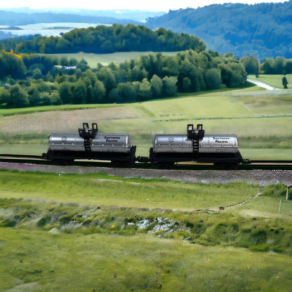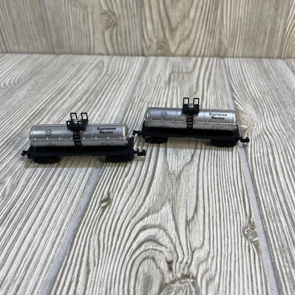 Get your hands on this set of 2 Southern Pacific Tank Car model train tankers, must-have collectible items for train enthusiasts! The attention to detail is impeccable, with a mini metallic finish that truly brings this piece to life. 3.5” long each. Good condition, minor wear to the original boxes. See photos.