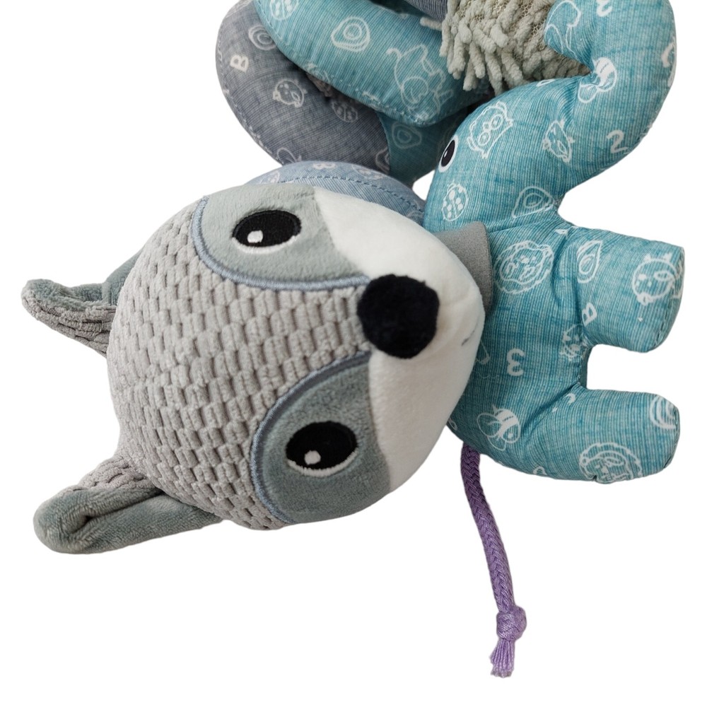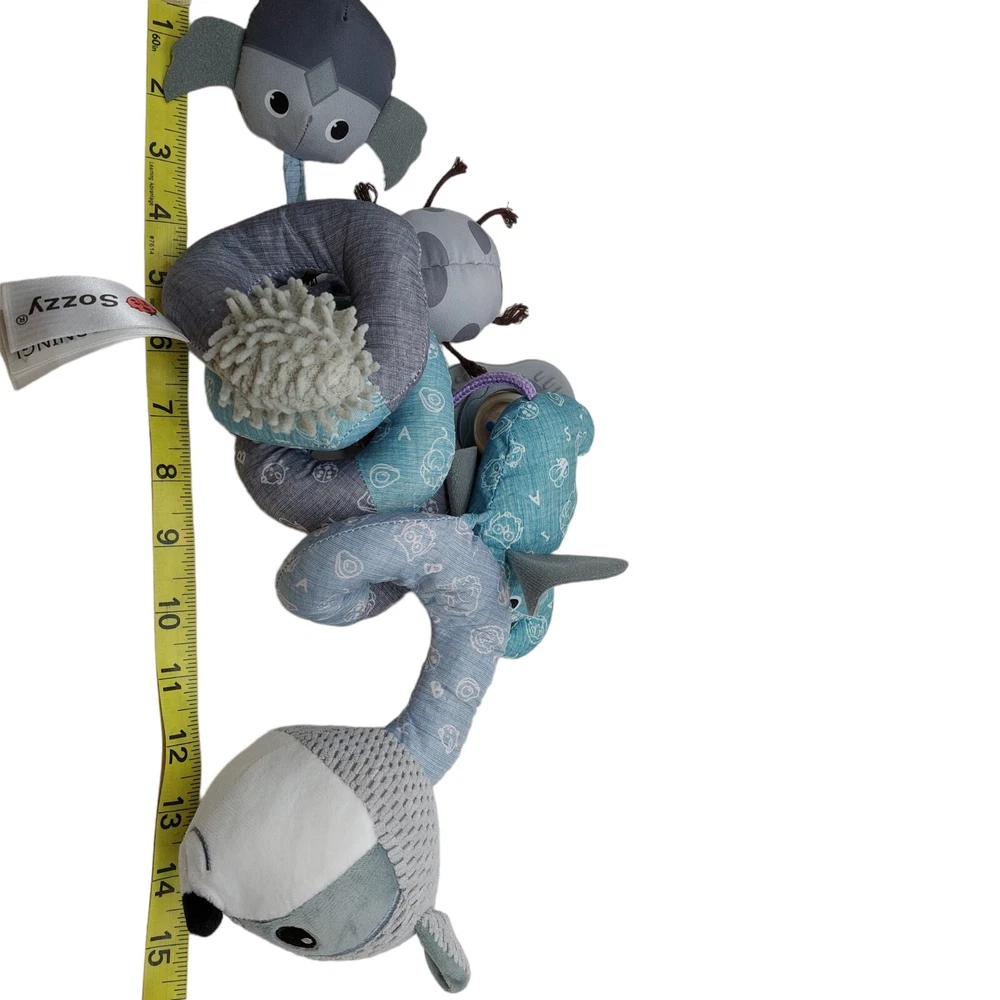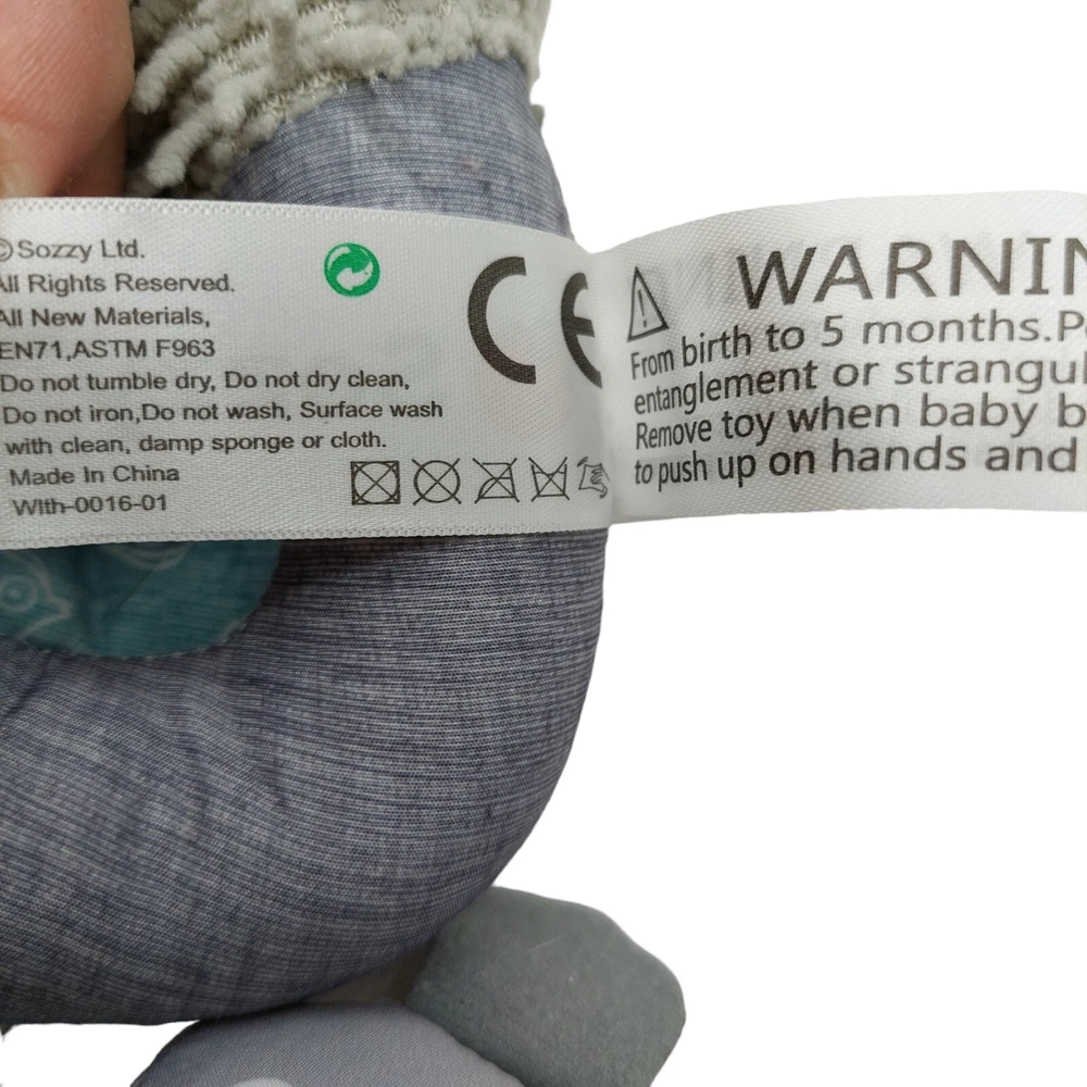 Sozzy Plush Baby Toy Hanging Fox for Crib or Stroller Blue Gray.