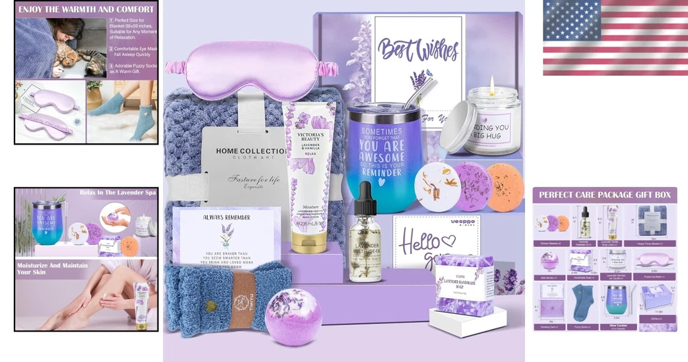 Spa Gift Basket for Women - 15 Luxurious Lavender Products for Pampering Moments