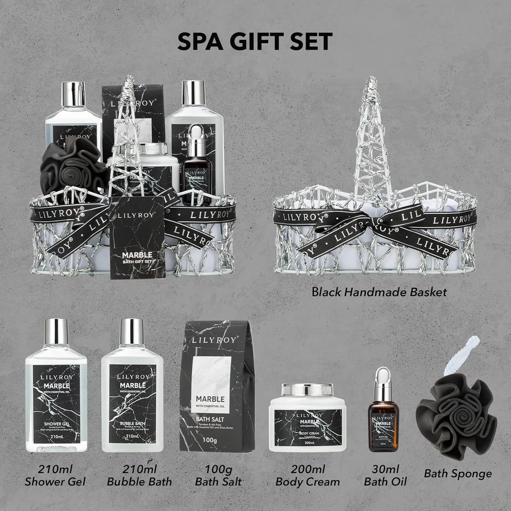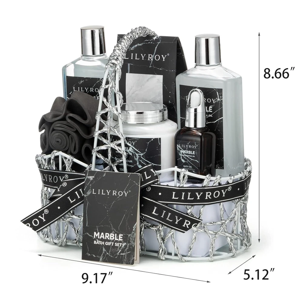 7 PCS GIFT BASKETS FOR YOUR LOVER: This complete gift set contains premium facial skin care products w/ 210 mL Shower Gel, 210 mL Bubble Bath, 200 mL Body Cream, 100 g Bath Salt, 30 mL Bath Oil, Bath Puff SANDALWOOD & OAK SPA GIFT BASKET: This gift set for your lover with our sandalwood and oak fragrance has a cool, woody, fresh flavor. Body wash and bubble bath helps prevent body odor and have a long-lasting unique scent of wood BETTER FOR YOU INGREDIENTS: Take care of your skin with LILY ROY skincare products. Our kit has the highest quality ingredients like lavender essential oil, shea butter, and vitamin E to help moisturize and soothe the skin. No testing on animals. Vegan, Mit-free, Paraben-free lavender essential oil, shea butter, and vitamin E to help moisturize and soothe the skin PERFECT GIFT BOX FOR LOVER: Great gift choice for Valentine's Day, Father's Day, Mother's Day, Anniversary, Birthday, and Christmas. The recipient will like it. Birthday gifts for men & women COMES WITH A REUSABLE BASKET: The skincare and bath gift set has an upscale and beautiful BASKET, making a multi-purpose storage solution to keep your beauty essentials. It also has a gift note card for you to personalize it Smoothing, Moisturizing, Nourishing, Softening, Brightening, Cleansing