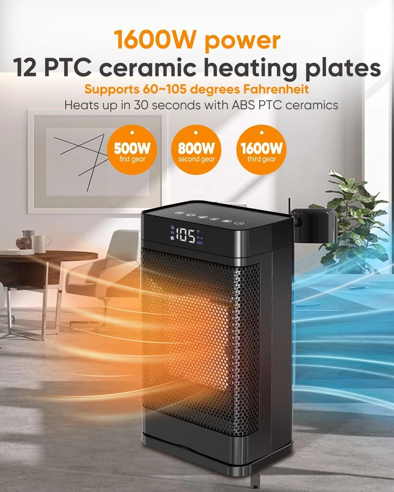 Space Heater 105°F /1500W Portable indoor Electric Heaters,12 PTC Ceramic Rap...