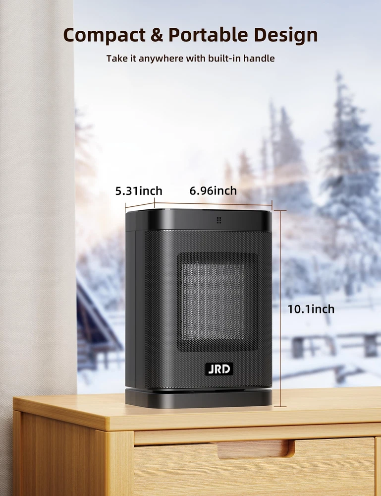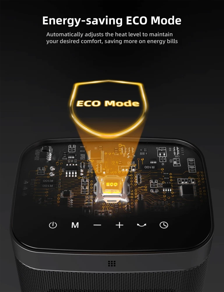 Rapid Heating: This 1500W space heater delivers warmth quickly with advanced PTC ceramic technology. The heating areas are up to 200 square feet. Warm from Every Angle: The 80° wide-angle oscillation covers the entire area, offering even heat for your bedroom, garage, basement, office, desk, and more. It operates quietly and keeps comfortably warm without disrupting your sleep or work. Operation Modes: This electric heater has 3 energy-efficient modes ( Low-900W, High-1500W, and ECO) that cater to different heating needs. The ECO mode automatically adjusts the heating level based on the room temperature, providing precise warmth. Precise Temperature: Adjust temperatures from 41 to 95℉ in 1℉ increments in Low or High mode, set a timer (1-12h), and mute function to customize your comfort at the touch of a button. Easy to Use: This heater is designed with an intuitive LED touch-screen, making you clearly view the heating status. It comes with a remote control allowing you to adjust the settings from anywhere in the room. Safety Protection: This space heater for indoor use has essential safety features, including ETL-certified, tip-over and overheating protection and an enhanced safety plug. The child lock function allows parents to lock this portable heater for their children and pets. Compact & Portable Design: This desk heater is easy to carry around indoors and fits in the bedroom, living room, or office, providing warmth and comfort where you need it.