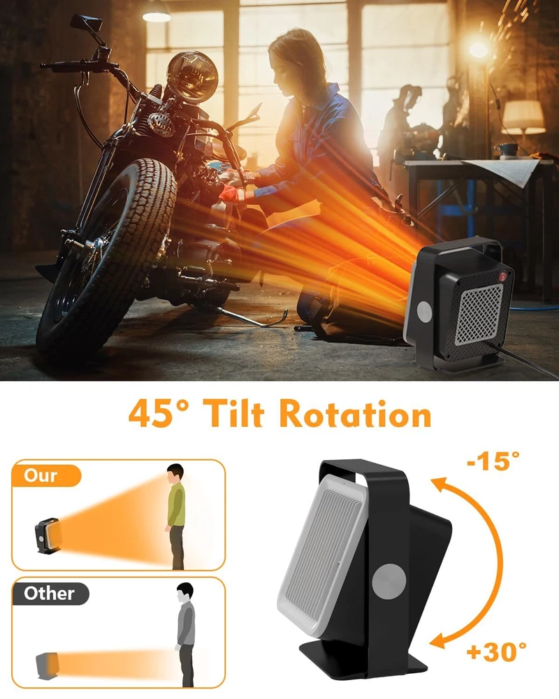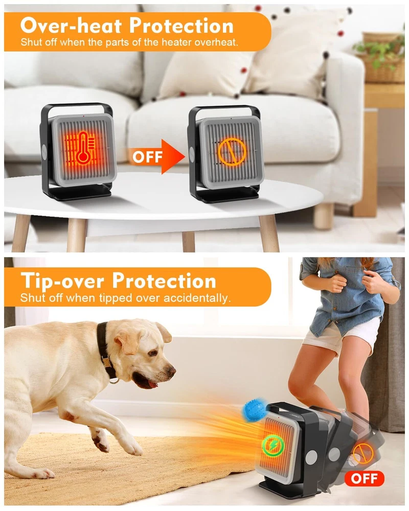 🔥🔥 Instant Warmth with PTC Ceramic: Experience cozy comfort within 3 seconds, thanks to our advanced PTC ceramic heating technology. Say goodbye to chilly office spaces and hello to rapid warmth. 🔥🔥 Customize Your Comfort: Find your ideal heat angle with the 45° adjustable design. Whether it's for targeted warmth during work or a subtle heat adjustment, this heater has you covered. 🔥🔥 Double the Safety, Double the Peace of Mind: Your safety is our priority. This space heater features both overheating and tip-over protection, ensuring you stay warm without worries. It's safety meets warmth in one sleek package. 🔥🔥 Modern Minimalist Elegance: Elevate your workspace with this modern, minimalist space heater. It's perfect for your indoor office desk or any small area. The sleek design seamlessly blends with your decor. 🔥🔥 Perfect Winter Gift: Looking for a thoughtful gift for the winter season? This small desk space heater is an ideal choice for Halloween, Thanksgiving, Christmas, or your parents' birthday. It's a practical gift that keeps your loved ones warm all winter long.