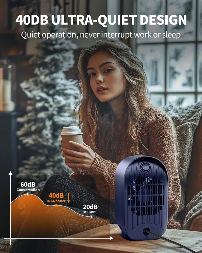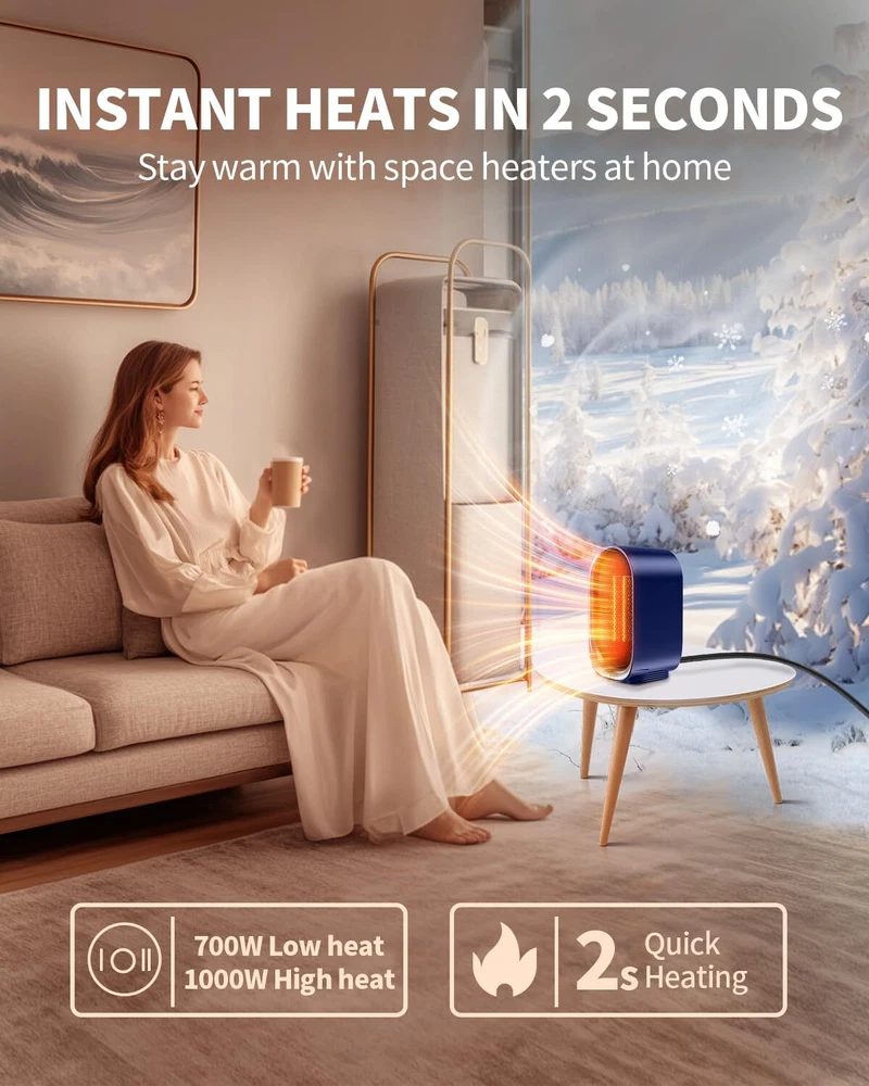 đ„ă2S FAST HEATINGă space heater used the advanced PTC ceraming heating technology, the electric heaters heats up 200 square feet in seconds more efficiently and fast,letting you feel fast, balmy heat straight away. đ„ăTIP-OVER & OVERHEAT PROTECTIONă small heater for indoor use quipped with a anti-tilt switch, the mini heaters will be switched off automatically when the heater tilts more than 45 degrees from the ground or the temperature of the heater is too high in the process of use. đ„ă2 HEATING MODEă portable heater for bedroom designed with 2 heat mode, bringing you proper warmth as you need. Our ceramic heater for indoor use will keep you comfortable at all times in the winter. đ„ăMINI PORTABLE HEATERă 5.28 x 4.45X 8.5 inch. Portable mini heater with build in carry handle easy to carry. 2 adjustable tempreture of the desk heater equips with stable warmth for small areas. The length of the cord is about 4ft to allow for unobstructed use. đ„ăSAFE TO USEăOffering quiet operation and rugged construction, making it a perfect choice for bedrooms and living areas. Meanwhile, the use of high-quality fire-resistant materials will provide security protection for your family. UL is Listed for the USA to keep your safety.
