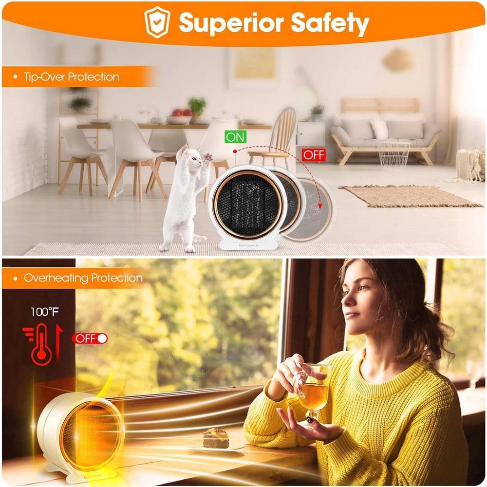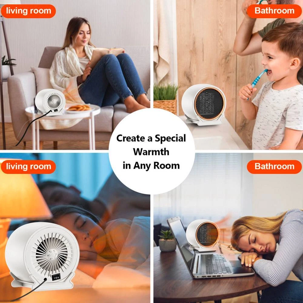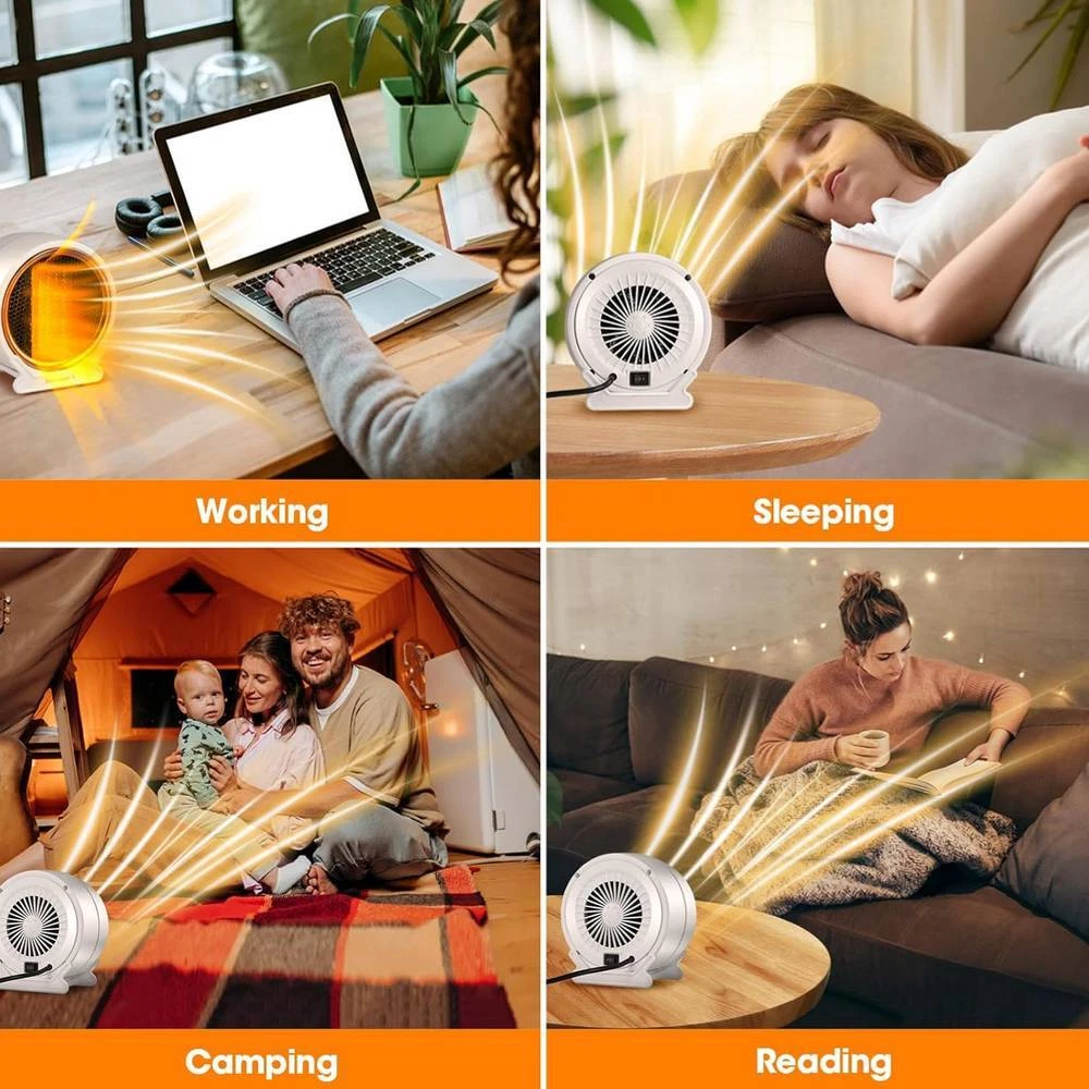 Note: . Pl ease don't cover the fan when the machine working. Please don't use it for a long time. There is no light in the use of the product, and the picture is a display effect. Factory mass production, the product may have small scratches,we promise all products are brand new. F eatures: Energy Saving Fast Heat Mode Our fan heater has 2 heating levels and fan mode: 1200W (high heat) / 800W (low heat) ,the low setting does not require much electricity to work, reduce your electricity bills by heating with this energy saving space heater. Ceramic heaters that heat up quickly, instantly and circulate warmth through the air, mini space heaters give off big heat! 3S Fast Heating, Instant Warmth This portable Space Heater, PARIS RHÔNE Ceramic Heaters for Home Low Energy, 1200W, Portable Heater for Office, Study[Energy Class A++] heater comes with three modes, including fan mode, 800W low heating and 1200W high heating. High-efficiency heaters indoor portable electric heater can emit a lot of heat within 3S, quickly indoor heater keeping your large room cozy and comfortable all the time. Quiet Operation Due to the ultra-quiet design(30-50db), you can hardly feel the operation of the room heater during use, and you will not be disturbed during sleep. Portable Mini Space Heater This electric heater with a handle design is very convenient to carry and move, and can be placed wherever you need it. The space heater for indoor use is very small, with a size of 12*11.5*21.5 cm, which does not take up too much space. Even in the cold winter, the mini heater can give you a warm night. Descriptions: Name:Smart Heater Fan Type:Heater Fan/Space Heater Features:800/1200W Power,PTC Material,Overload Protection,2 Levels Winds,Portable Design,Tip-Over Protection,3s Heating Rated voltage:220V-240V,50/60Hz Power:800/1200W Gear: low gear 800W, high gear 1200W Noise: ≤50dB Applicable area: 10-20 ㎡ Heating mode: PTC ceramic heating Product size: 16.5*11*18cm Single weight: 0.88kg Plug:US Plug Color:White Packages: 1x US Plug Heater fan 1x Manual
