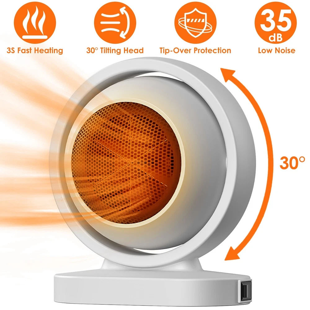 GOOD QUALITY Featured Item Product Detail Image Gallery Product Description Overview: Adopts PTC heating technology, our desktop space heater quickly warms up to 140°F in just 3 seconds, keeping you cozy this winter. Powerful but quiet motor operates under 35dB, allowing you to focus on your tasks without distraction. Adjustable 30-degree tilting head ensures optimal warmth in various settings. Made from upgraded flame-retardant ABS material with overheat protection and a tip-over safety feature, it prioritizes your safety. Its compact and lightweight design makes it ideal for homes, offices, bedrooms, and small spaces—perfect for you and your loved ones during the cold winter. Features: 3S Fast Heating Space Heater: Adopt PTC heating technology,our desktop space heater delivers high-efficiency and rapid warm breezing with temperature ranging from 122°F to 140°F within 3seconds. Simply press power button to turn on/off,keep you cozy and comfortable in this chilling winter! Low Noise Space Heater: Powerful but quiet motor operates quietly while providing consistent warmth,less than 35dB low noise operation allows you to concentrate on working tasks without distraction. 30Degree Tilt Head: 30degrees titling head is designed for a tailored heating comfort,ensuring you can achieve optimal warmth in various settings. This angle adjustable space heater has always got you covered! Multi-Layer Protection: Upgraded flame-retardant ABS material and overheat protection are reliable and safe. Tip-over protection system will auto shut the heater off when the heater is knocked over by accident and it will continuously working when stands up. Always put your safety at the first place. Compact Tabletop Size: Compact and lightweight design makes it a practical choice for various scenarios,including home,offices,bedrooms,and small living spaces. An ideal companion in this freezing winter for you,your friends and family. Specifications: Brand: iMounTEK Product Type: Space Heater Material: ABS Color Option: Grey, White Voltage: 110V 50/60Hz Rated Power: 300W Safety Protection: Overheat Protection, Tip-Over Protection, Short-Current Protection Control Method: Button Control Temperature Range: 50°C~60°C/122°F~140°F Noise: 35dB Tilt Head Angle: 30 Degrees Power Cord Length: About 90cm/35.43in Item Size: 16.5x13x18cm/6.49x5.11x7.08in Item Weight: 510g/1.12lbs Package Size: 18x14x21cm/7.08x5.51x8.26in Package Weight: 591g/1.30lbs Package Contents: 1x Space Heater 1x User Manual Terms & Conditions Thank you for your business !