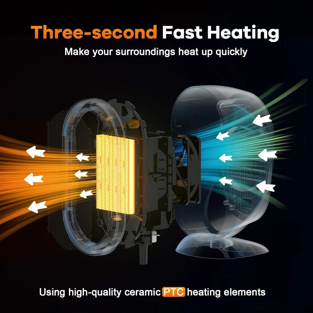 Portable space heaters for indoor use, Keep you warm and accompany you! Fully Assembled, PTC Technology.Advanced heating elements provide faster and more efficient heating than traditional heaters 🔥Main Features: 1.Heating material:PTC ceramic 2.Power:800W/1200W(2 modes) 3.Safety protection function: space Heater with tip-ove,overheat protection 4.Energy saving:30% 5. Size: 4.92*4.92*9.53 inch(LxWxH) 6. Weight: 900g 7.How to use: Please make sure that the electric desk heater switch is at the position of "o" before use.Press the temperature gear switch and adjustment:"0" is the power off key,"I" is the warm air gear,and "‖" is the hot air gear. ⚠︎Safe Caution: ▶The space heater must not be placed under a power outlet.A reliable power outlet must be used.The capacity of power outlet, plug and power lead all should be above 10A. ▶Do not insert foreign bodies into the inlet and outlet.To avoid accidents,do not sot the space heater towards the power outlet,pug and power cord. ▶The space heaters for indoor use is strictly prohibited to be used in the environment of inflammable and explosive articles, dust and oil pollution.Keep the surrounding air circulating during using,and the ambient temperature should not exceed 30℃. Unplug the power when there is no one in the room. ▶Do not use this portable heater near the bathtub,shower head or swimming pool. ▶If the room heater breaks down, please contact the dealer or manufacturer for repair.Do not dismantle the machine for repair without authorization. ▶Do not put anything on the space Heaters.It is strictly forbidden to touch the protection net cover when the small heater is working to prevent hot scald.Please pay special attention to children. ⚡️ Warning: In order to avoid overheating of the body,do not block the air inlet and outlet of the heater fan with foreign matter! Package list: 1*space heater 1*user manual 🔥Fast Heating and Thermostatic Control: This electric desk heater build in PTC ceramic heating tech as well as high speed fan helps heat the room quicker, and covers the 200 square feet office or room in minute fast and effectively.Besides,our this room heater has a built-in temperature controller,which can make the temperature output stably, allowing you to enjoy a warm indoor temperature. 🔥Tip-over & Overheat Protection: The small space heaters for indoor use quipped with a switch to switch off the machine if it is over returned, the design of overheat protection will switch off the appliance automatically in case of severe overheating.No more worrying about your dog or kitten knocking over the space fan and getting hurt. 🔥Space Heater with 2 Heat Settings: High Heat (1200w) / Low Heat (800w).The button on the back can control low temperature/off/high temperature, which is convenient to use.Our energy-efficient interior space heater features 2 different heat settings (LOW, HIGH), so you can tailor it to your exact needs. Instead of wasting a fortune on central heating, you can warm just the spaces you actually use. 🔥Low Noise To Use:The noise of the electric desk heater is lower than 50 dB level, the small space heater is use in the bedroom and office when falling asleep and working. Our mini heater fan can warm up space you need when studying, reading, working, and watching the movie without disturb. 🎁Perfect Gift Idea: Our space heaters for indoor use are packaged in a beautiful gift box and are the great gift for family, parents and friends. It is worth to mention that the compact design of the space heater allows it to be installed everywhere, suitable for living room, bedroom or office.Electric heater is a heartwarming gift.Also can send warm greetings to your family members or friends with this warm space heater