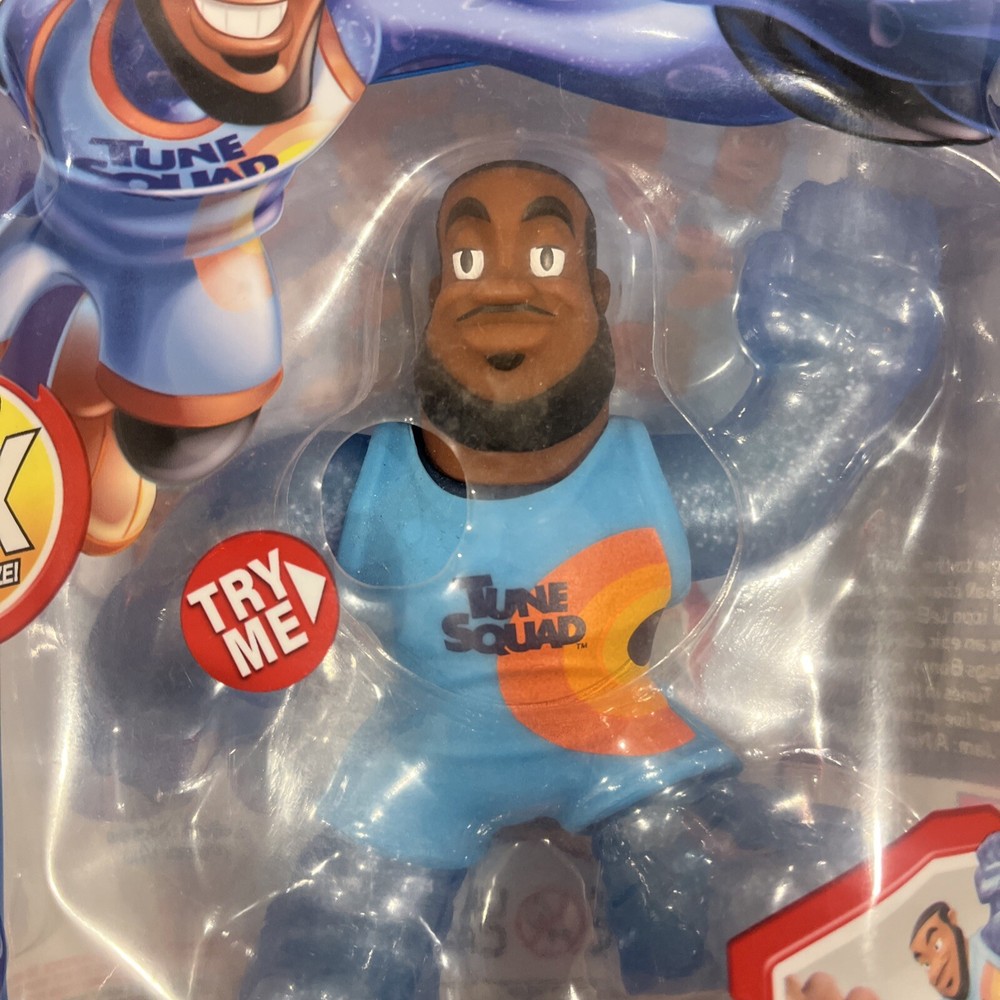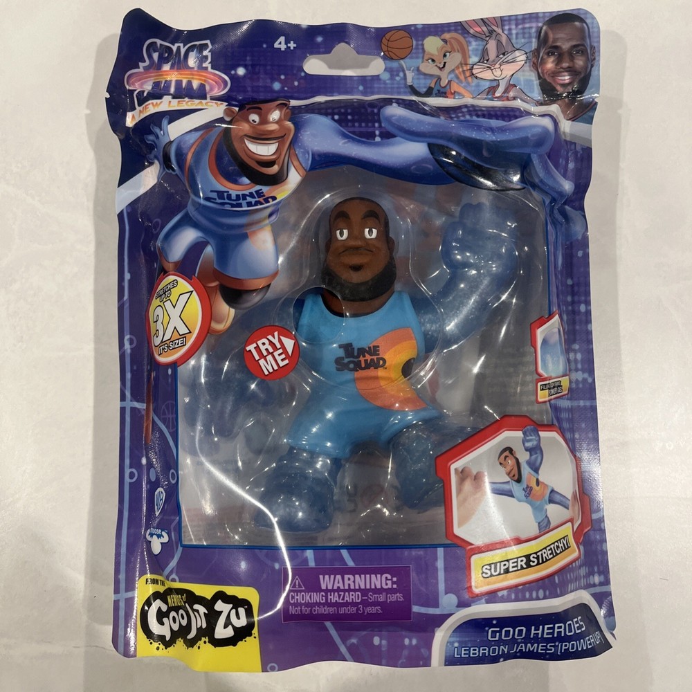 The Goo Jit Zu Space Jam A New Legacy LeBron James Goo Heroes action figure by Moose Toys features a hero character from the Space Jam franchise. Made of plastic and rubber, this multicolored figure is designed to stretch and transform. Standing at 5 inches tall in a 1:16 scale, this 2021 release is part of the Heroes of Goo Jit Zu series, inspired by the movie Space Jam: A New Legacy. Additionally, the figure is adjustable and comes in its original packaging, making it a fun and collectible addition for fans of basketball and cartoon characters.