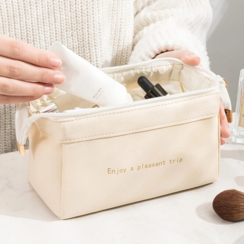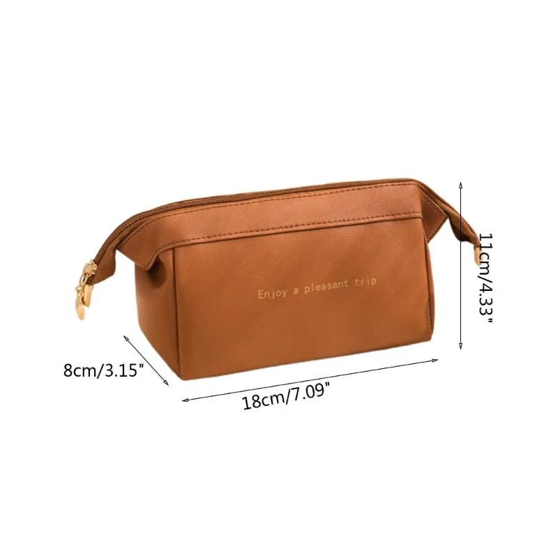 Features: Brand new and high quality pu leather material cosmetic bag, with sturdy zippers,durble to use. Large capacity makeup is spacious and fits travel accessories, makeup, lotions, brushes and the other beauty that you need. Roomy enough to store your daily and make your stuff organized. This women makeup for any occasions, such as business, school, dating, traveling, shopping or daily use. Perfect gift choice to your mother, girlfriend, wife, friend or colleague. Specifications: Gender: For Women Fashion Closure type: Zipper Material: PU Optional Color: Brown Pink Black Size:app. 18x8x11cm /7.08x3.14x4.33in Quantity: 1pc Package Includes: 1pc Travel Cosmetic Bag note: 1cm=10mm=0.39inch No retail package. Please allow 1-2cm error due to manual measurement. make sure you do not mind before you bid. Due to the difference between different monitors, the picture may not reflect the actual color of the item.