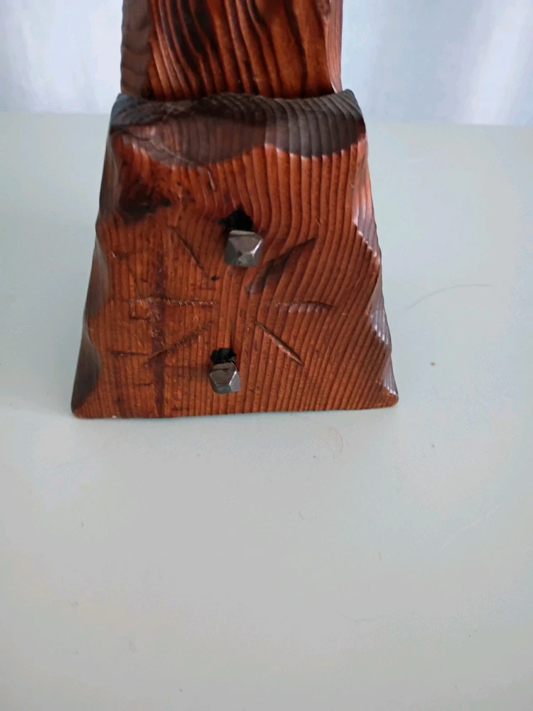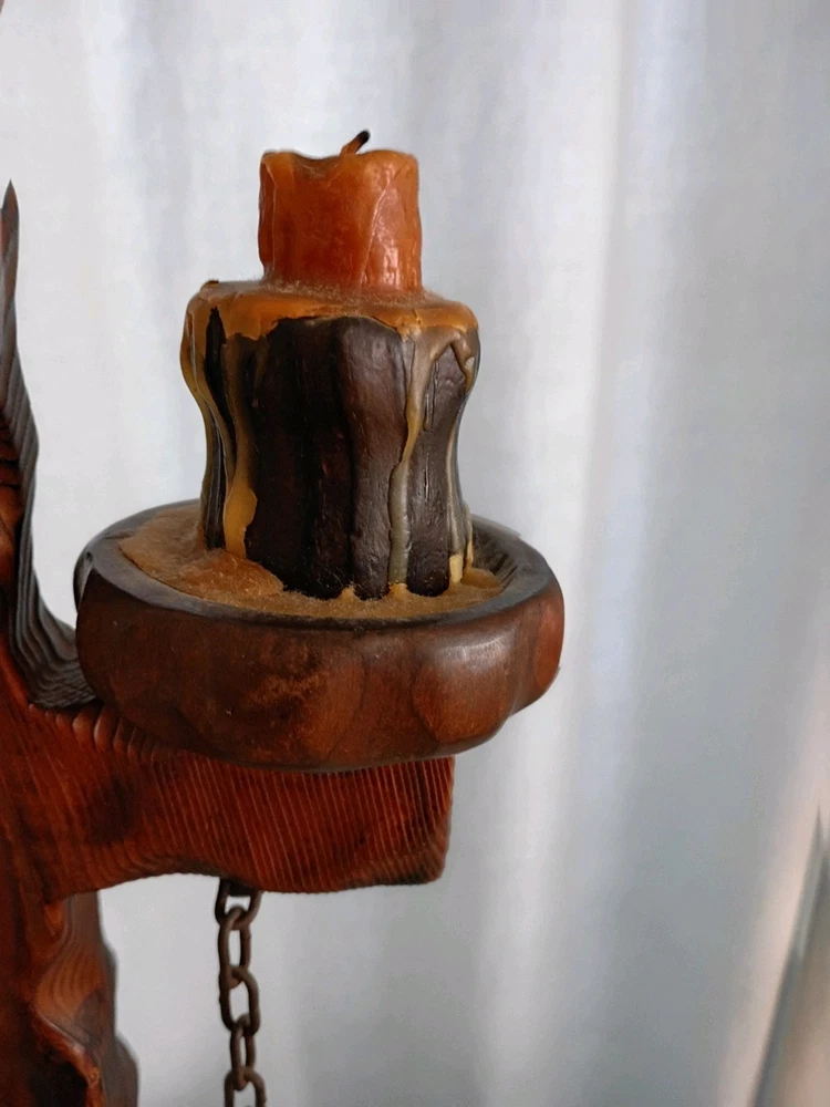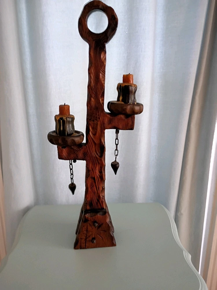 Embrace the timeless elegance of the Spanish carved wooden candle holder, a piece that radiates a brutalist aesthetic with its intricate carvings and embossed finish. The rich brown wood underscores the candlestick's vintage appeal, dating back to the 1970s, and adds a touch of sophistication to any setting. Crafted with care, this unbranded candle holder is versatile enough for all occasions and effortlessly complements various decor styles, from the traditional to the contemporary. Whether you're looking to enhance your living space or add to your collection, this candlestick is a charming addition that promises to cast a warm, inviting glow.